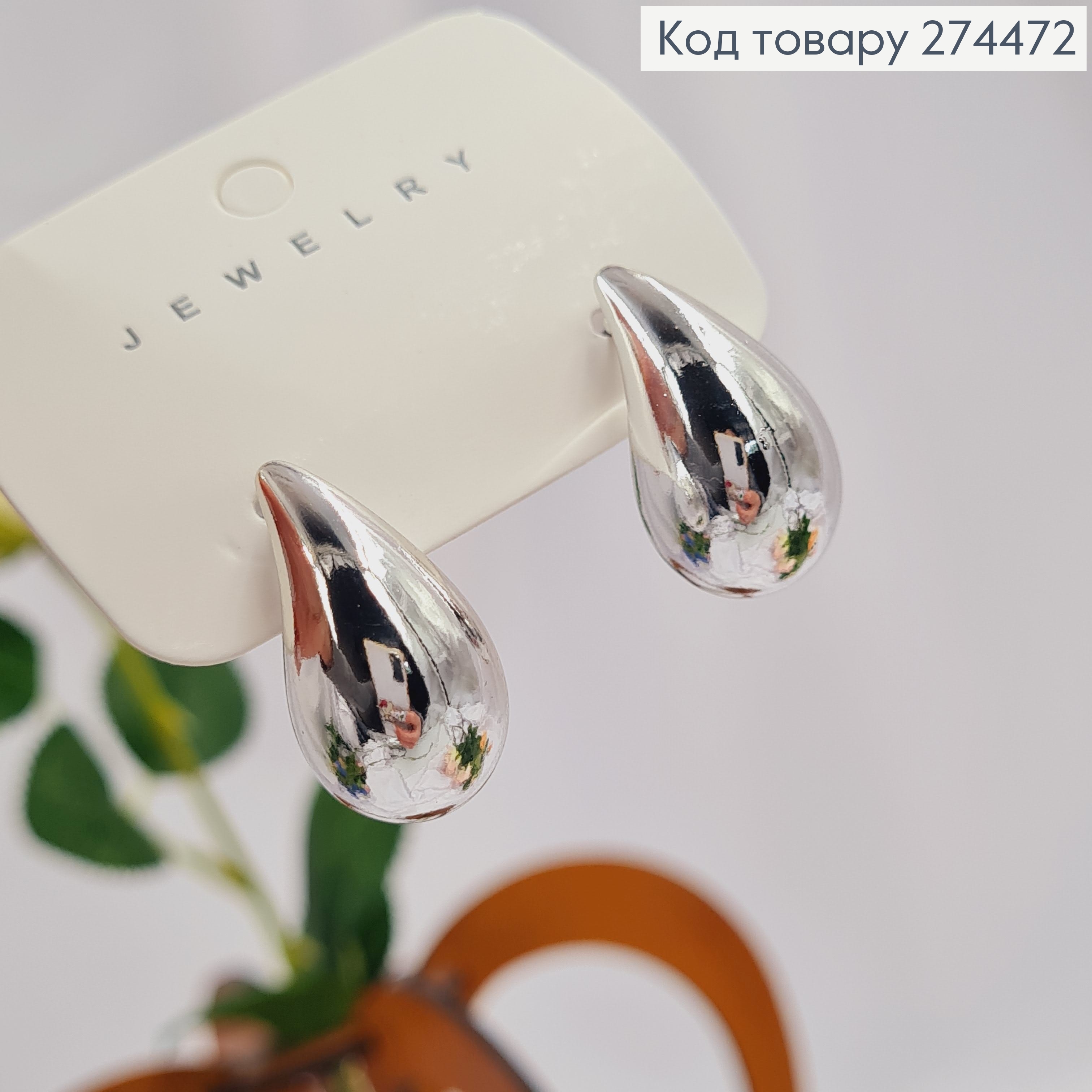 Серьги гвозди "КРАПЛИНКИ" серебряного цвета, 2,5см