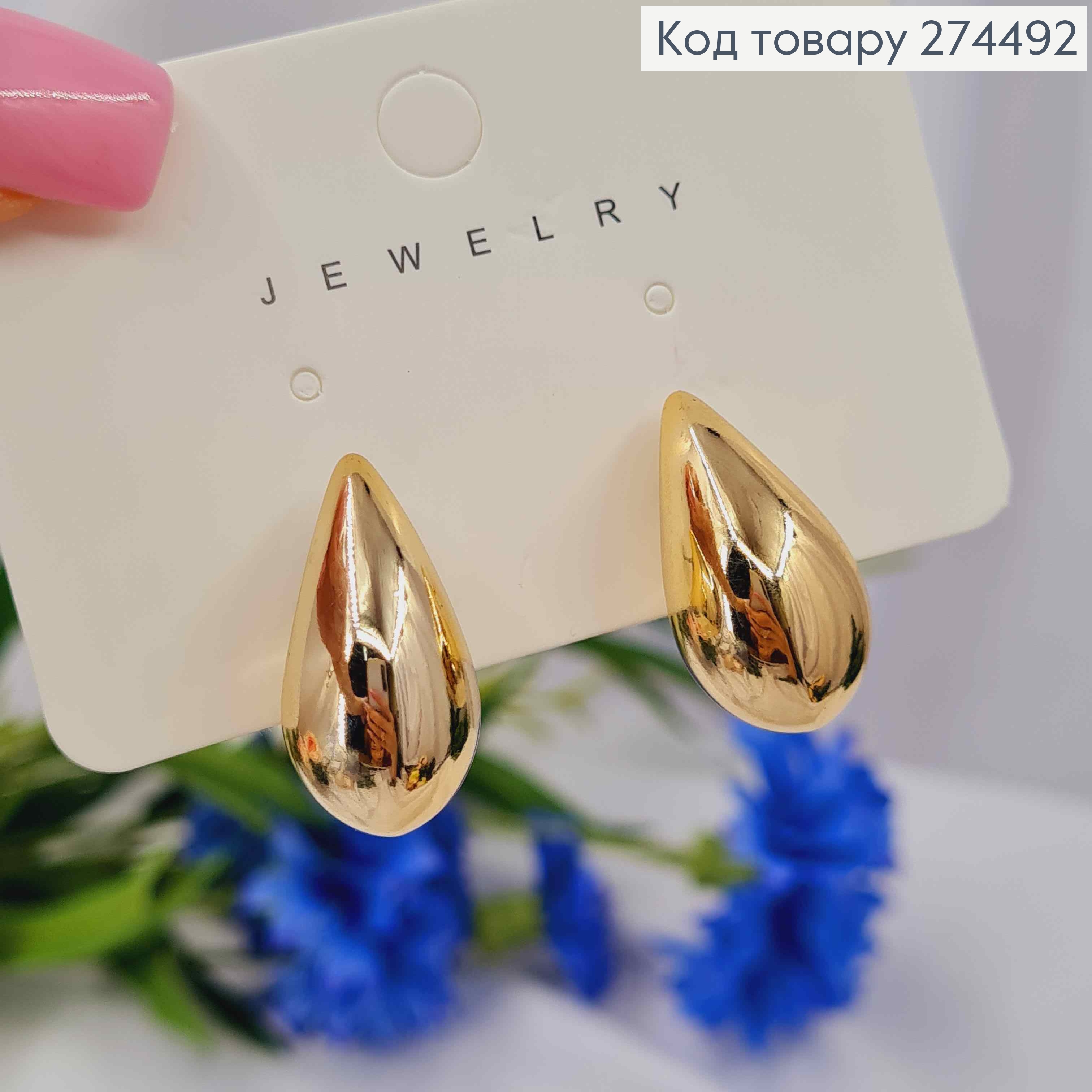 Серьги гвоздики, "Капельки", золотого цвета, 2,4см.