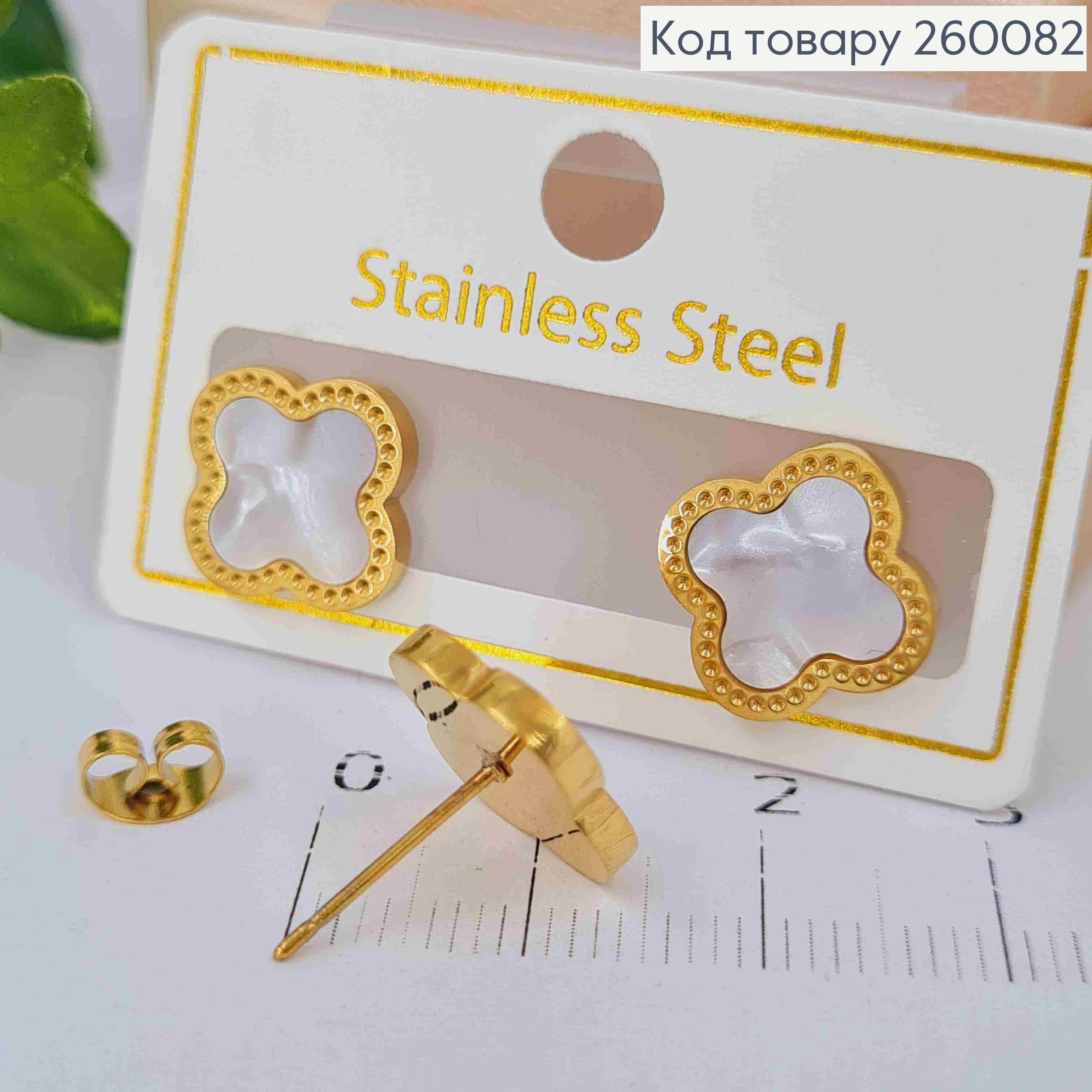 Серьги серебряного цвета, Van Cleef с перламутровой эмалью (1,4см), англ. застежка, Fashion Jewelry 260174 фото