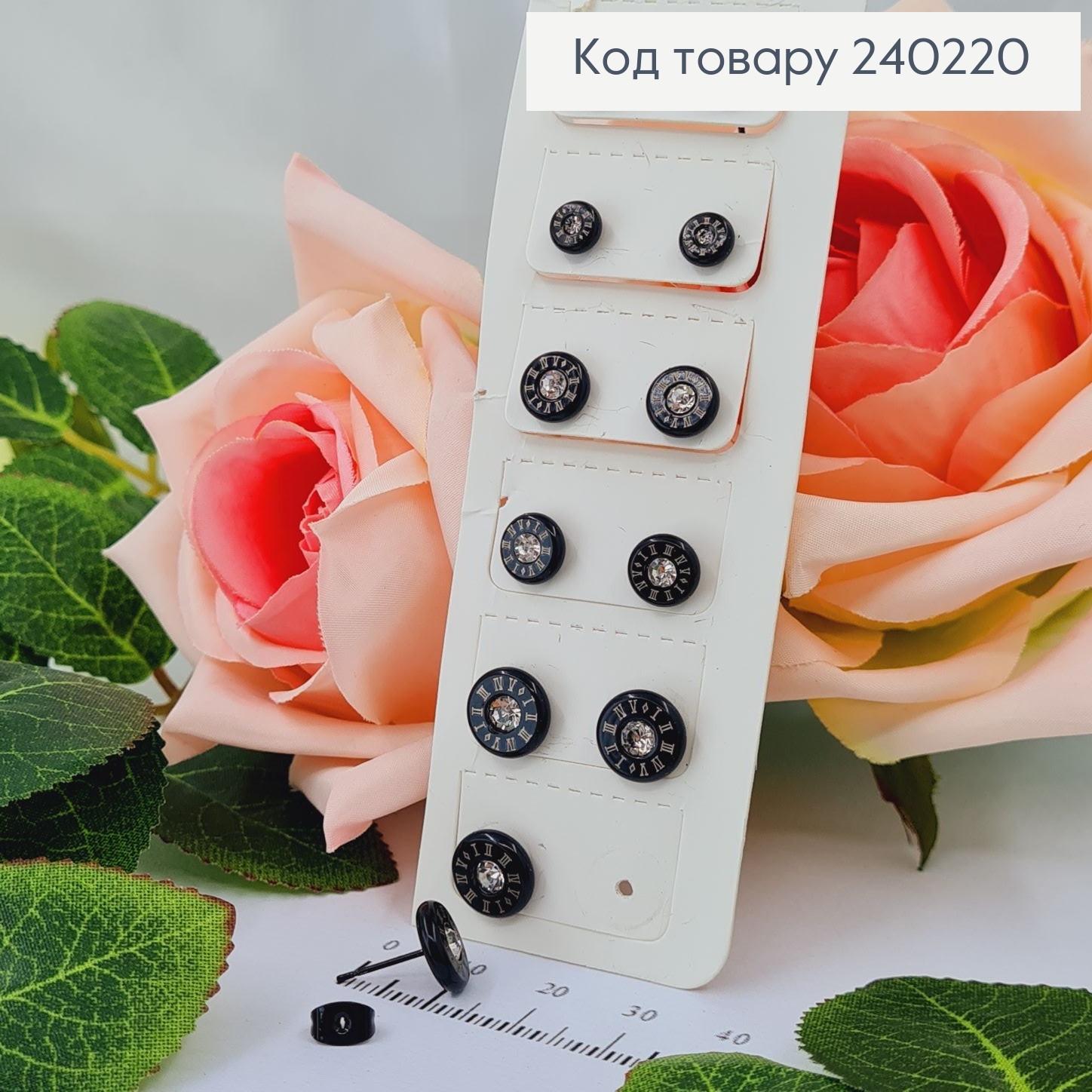 Сережки гвоздики "Римские часы" с камнем (6пар), Stainless Steel