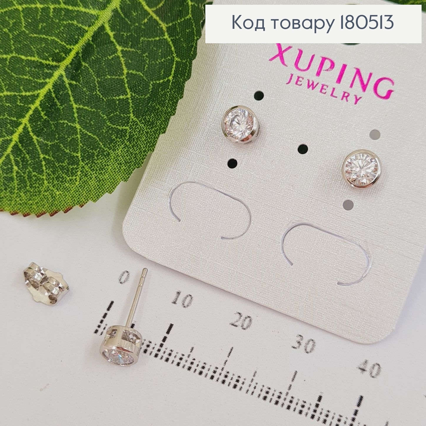 Серьги гвоздики родованые с круглым камнем 6мм Xuping