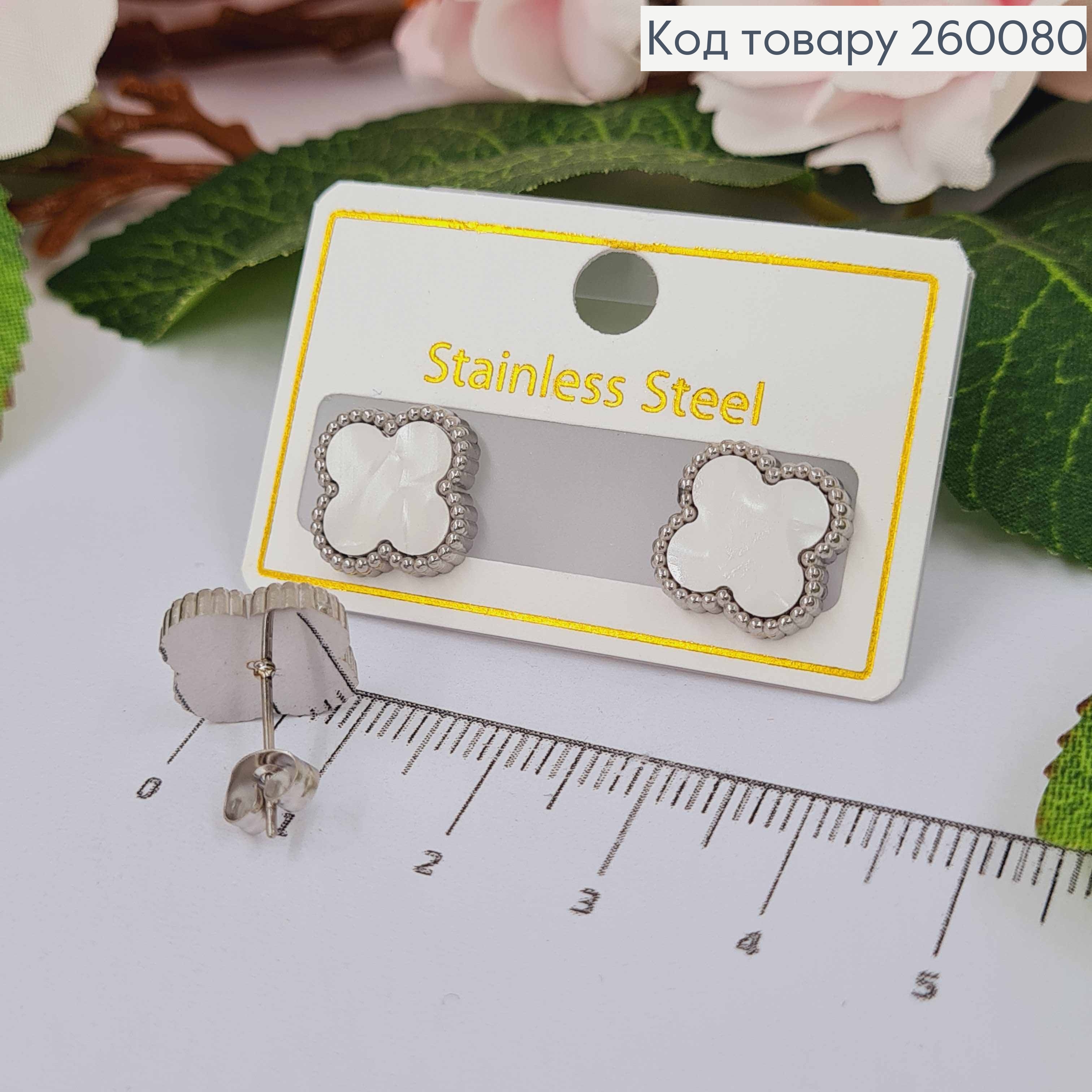 Серьги гвоздики, серебряного цвета, с Белой эмалью, "Van Cleef", 1,3см, сталь Stainless Steel