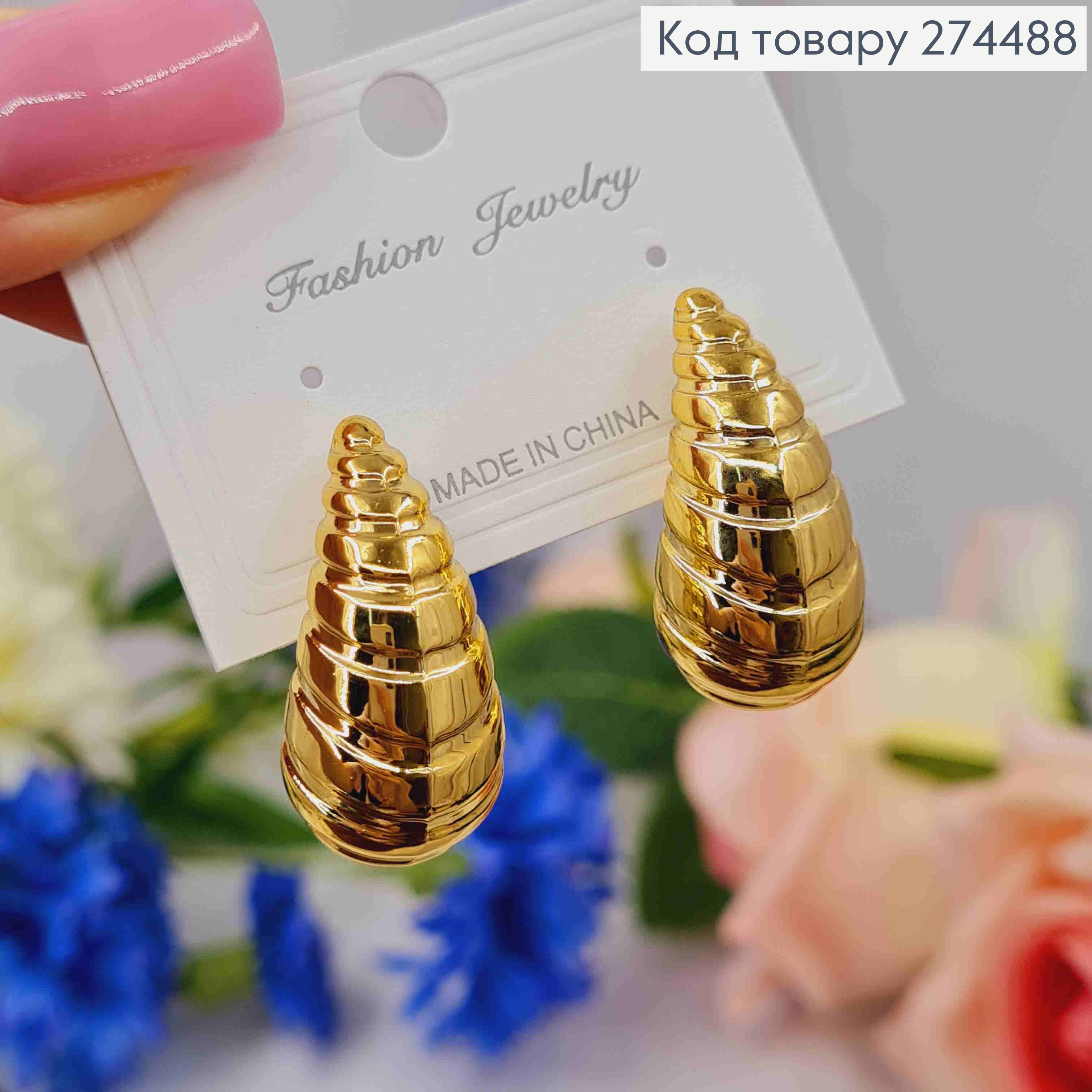 Серьги гвозди стильные "КАПЛИНКИ", золотого цвета, 2,8см