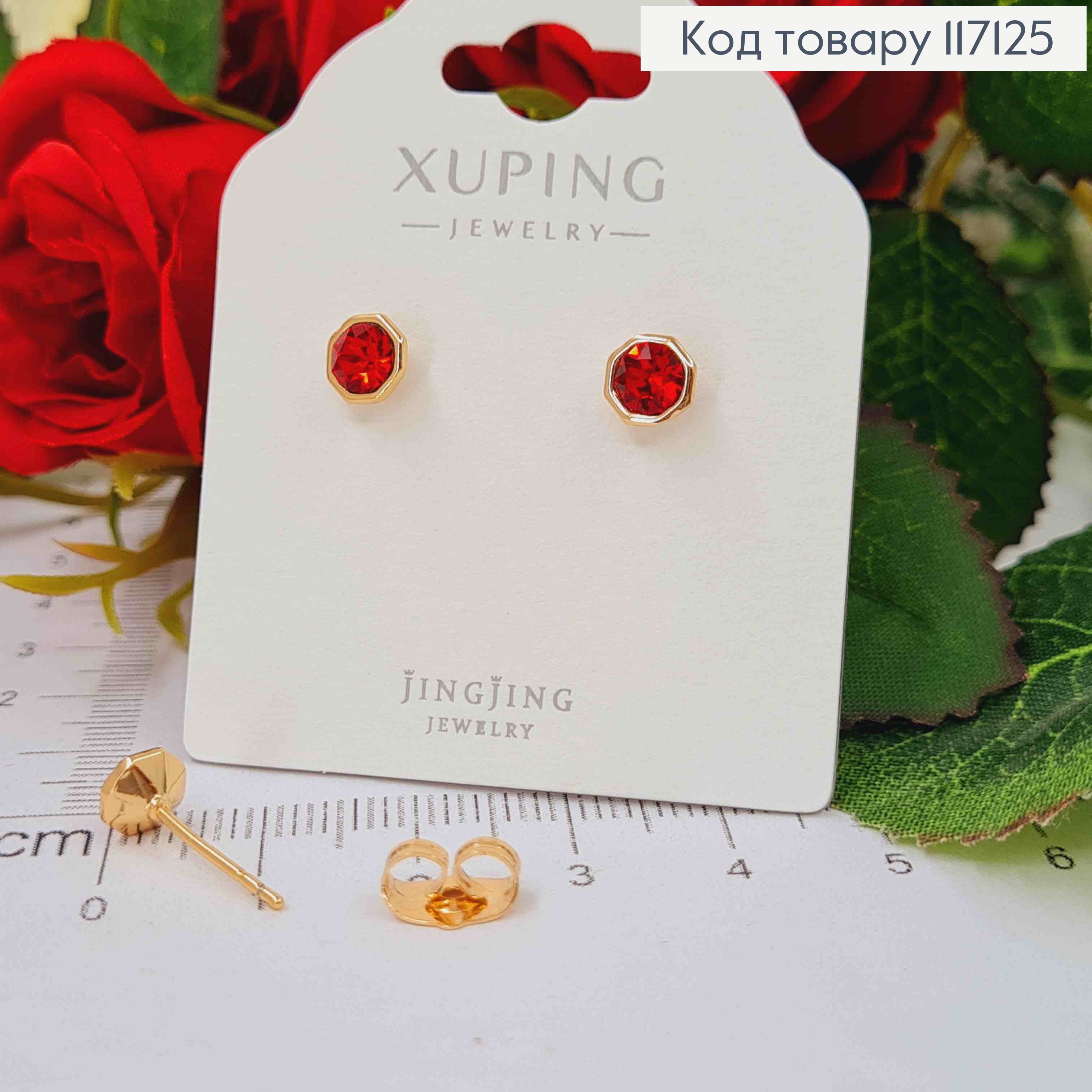 Серьги с квадратным Красным камнем Сваровски, дл. 1,5см, застежка левербек, Xuping 18К 119741 фото