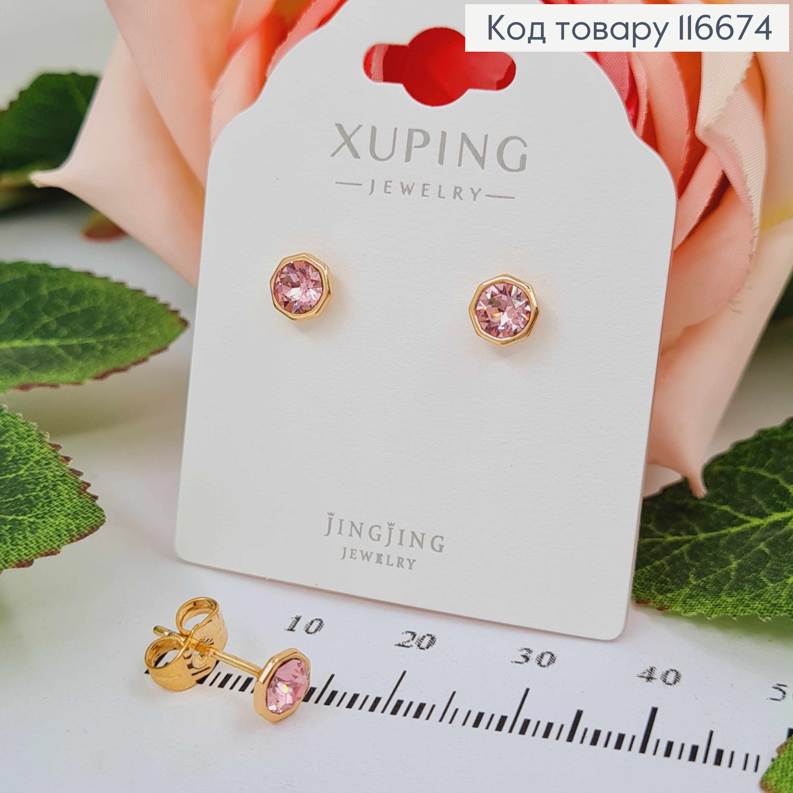 Серьги гвоздики с Розовым камнем Сваровски, 0,9 см, XUPING 18K 119850 фото