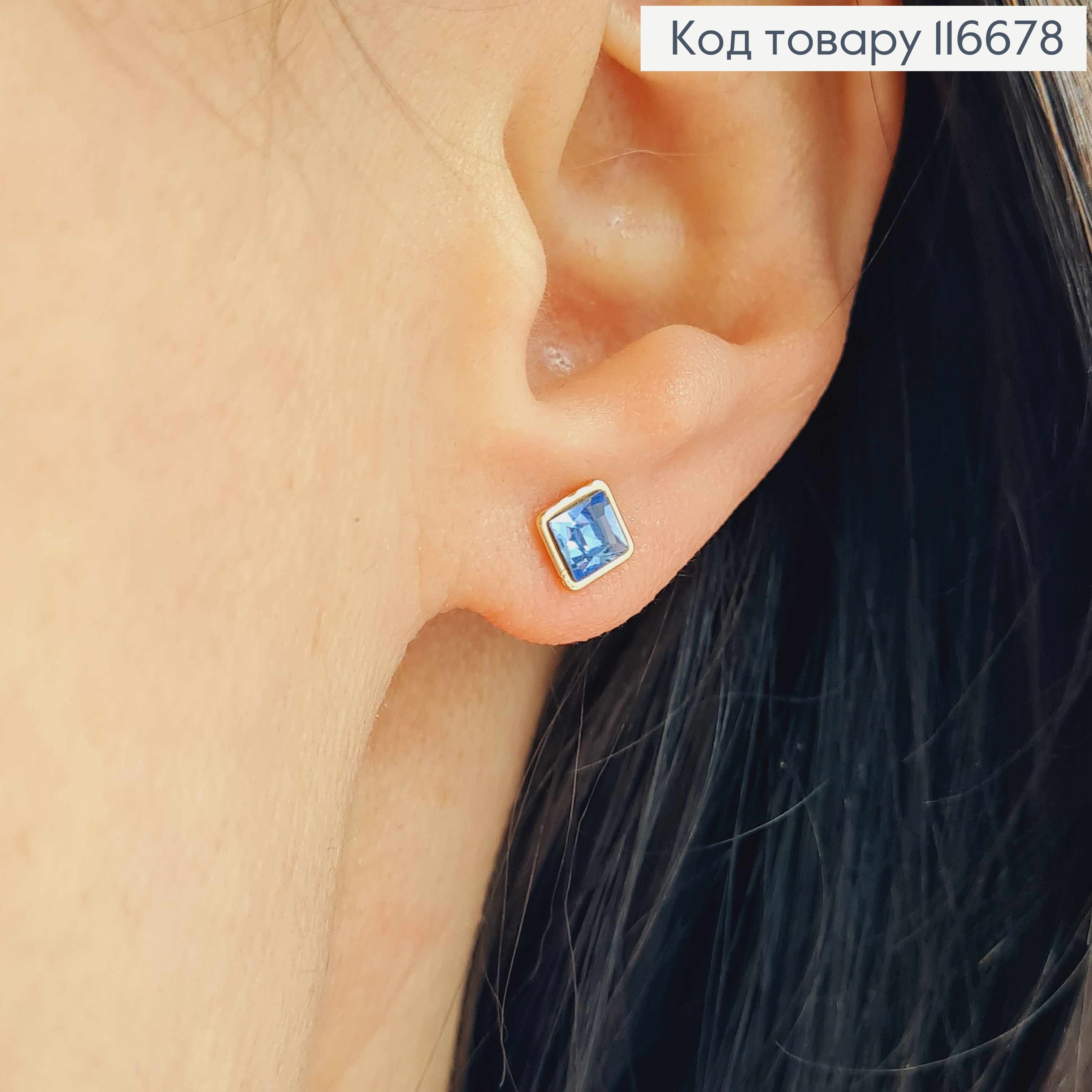 Серьги с квадратным Голубой камнем Сваровски, дл. 1,5см, застежка левербек, Xuping 18К 119740 фото