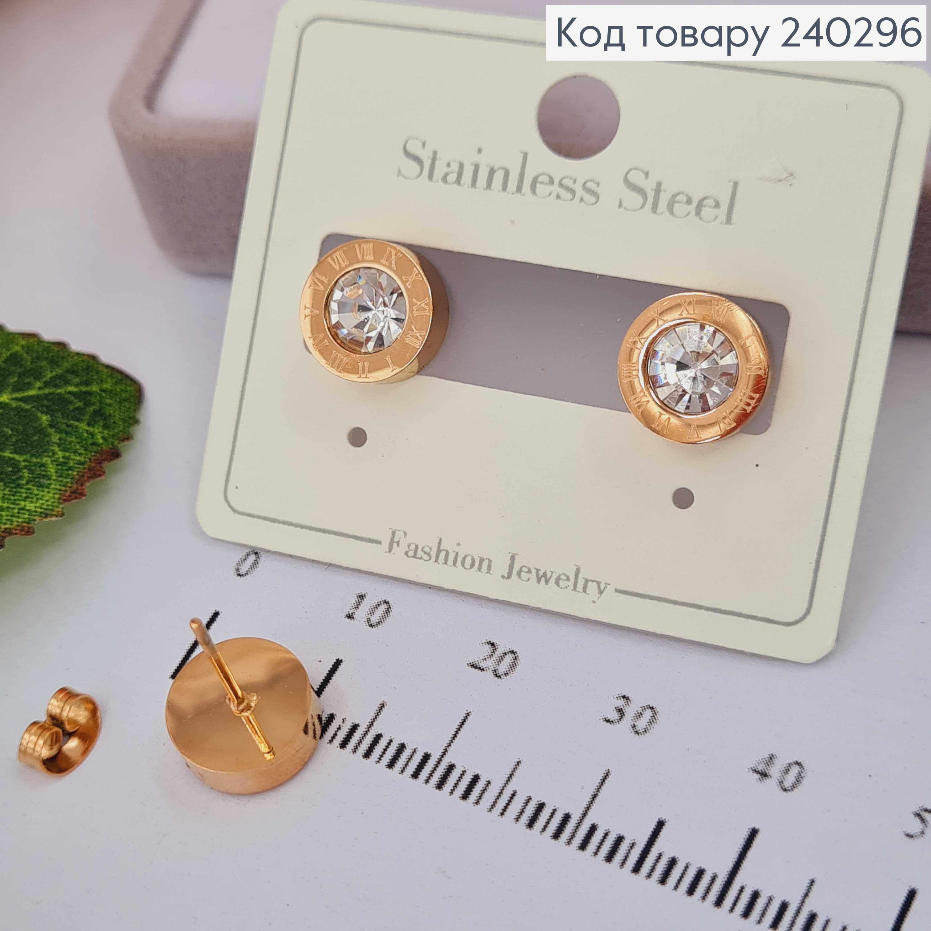Серьги гвоздики Римские часы, золотой цвет с большим камешком сталь Stainless Steel