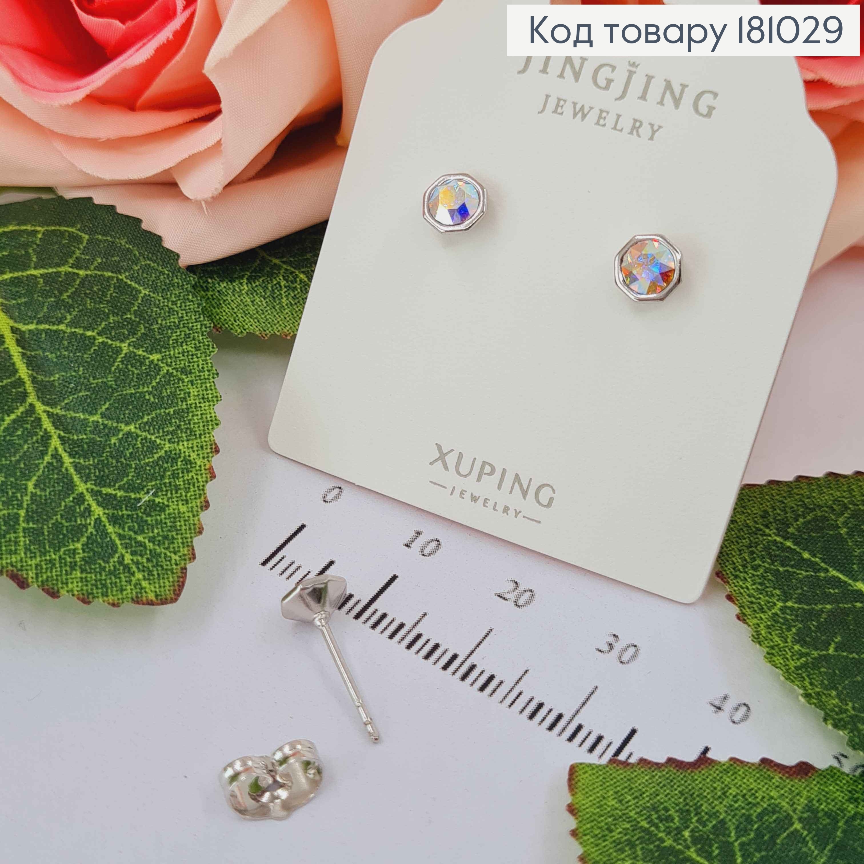 Серьги родованные украшены Блестящими камешками, 2см, английская застежка, Xuping 181960 фото
