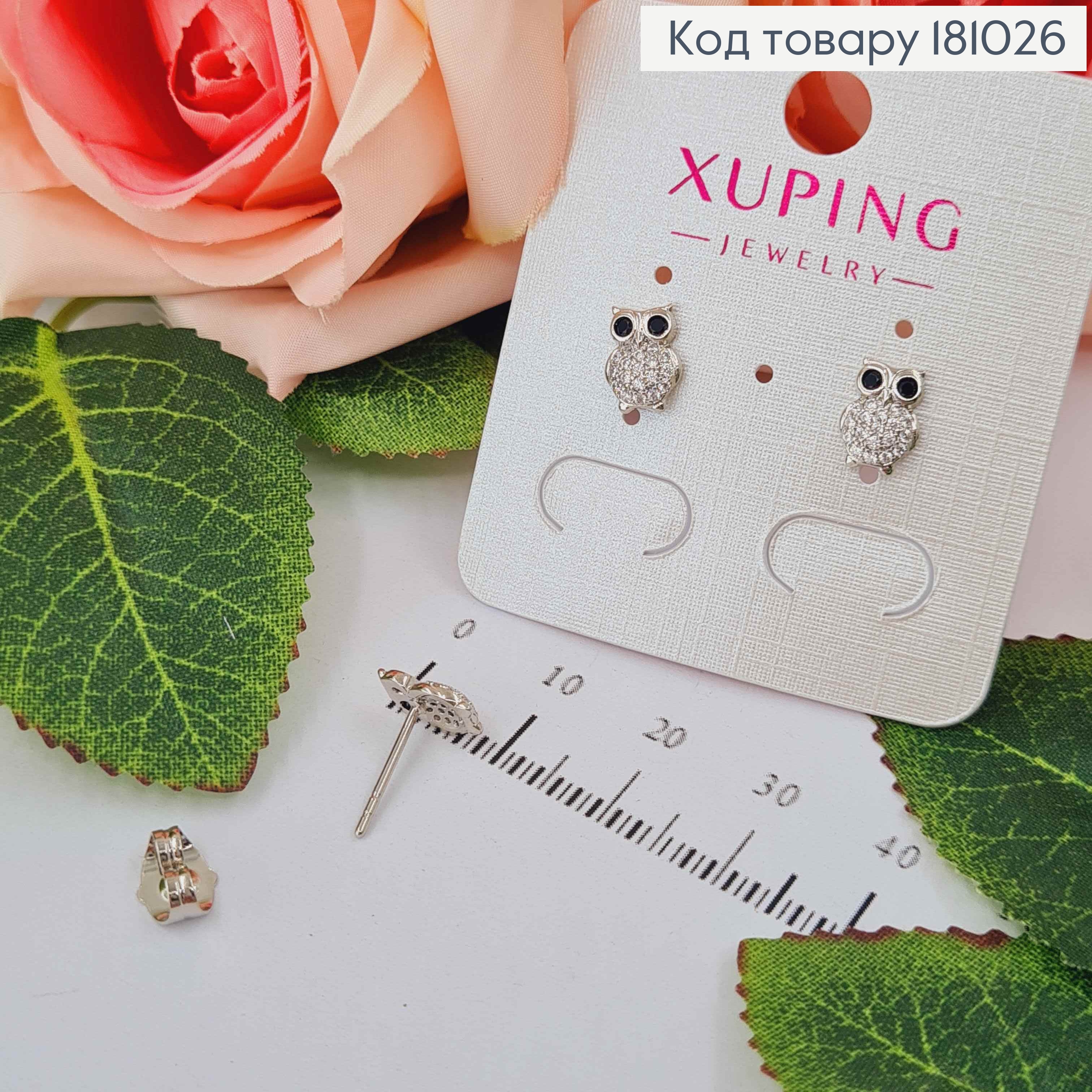 Серьги гвоздики родованные, Совы в камне, с черными глазами, Xuping