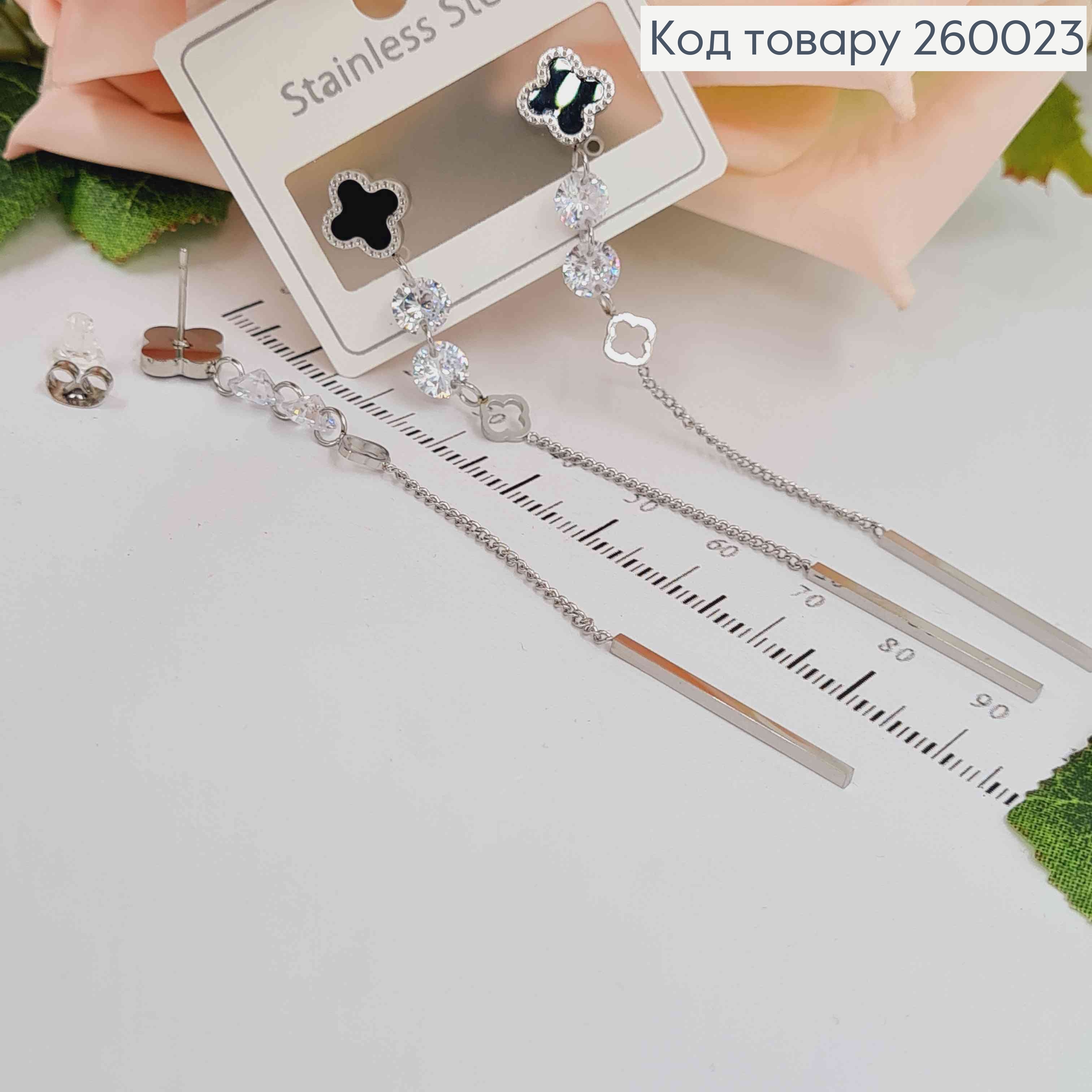 Серьги гвоздики серебряные. цвет, Римские часы. с подвесками камешками, 8см, сталь Stainless Steel