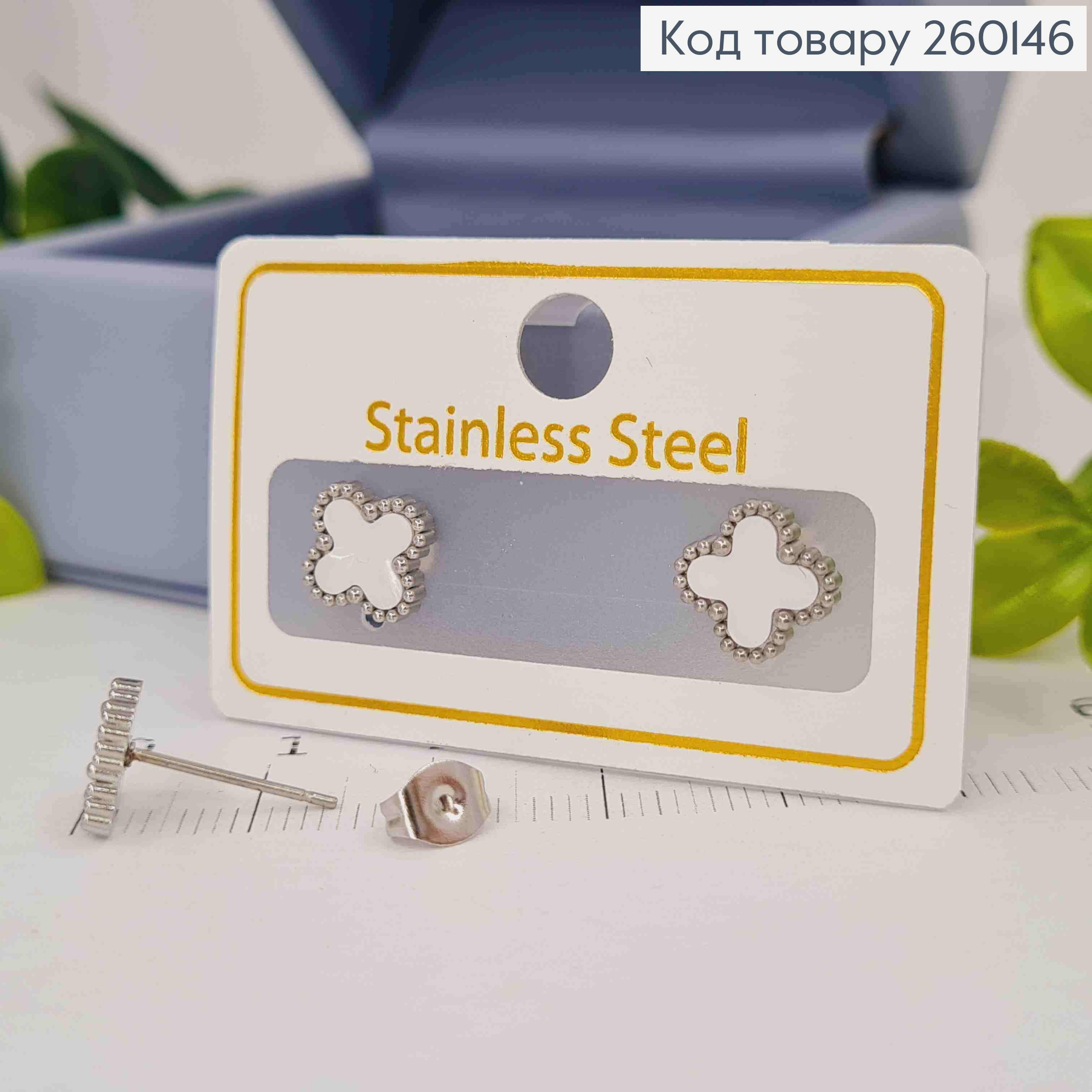 Серьги серебряного цвета, Van Cleef с перламутровой эмалью (1,4см), англ. застежка, Fashion Jewelry 260174 фото