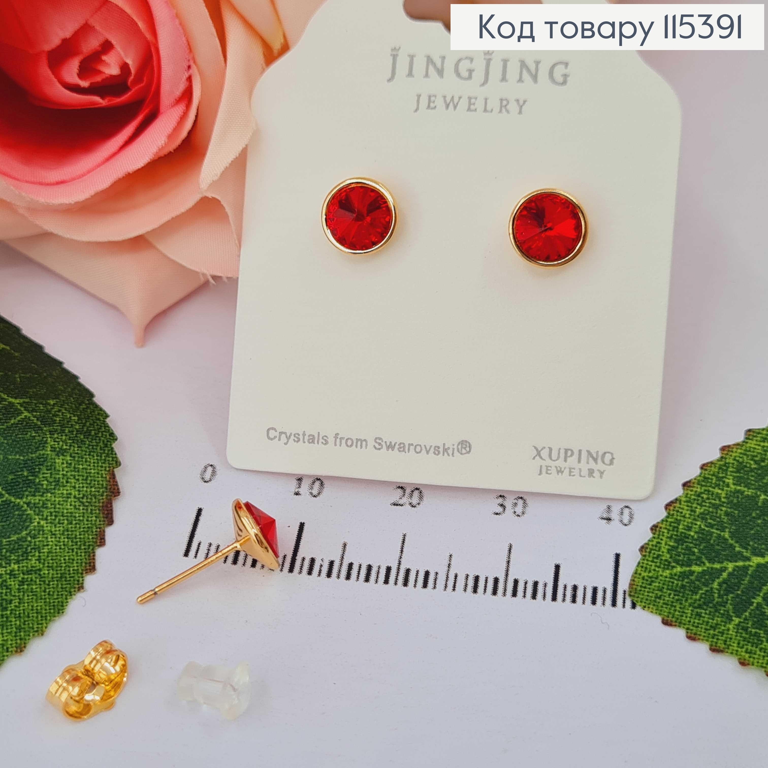 Серьги гвоздики Сваровски, с камнями рубинового цвета, 0,8см. Xuping 18K