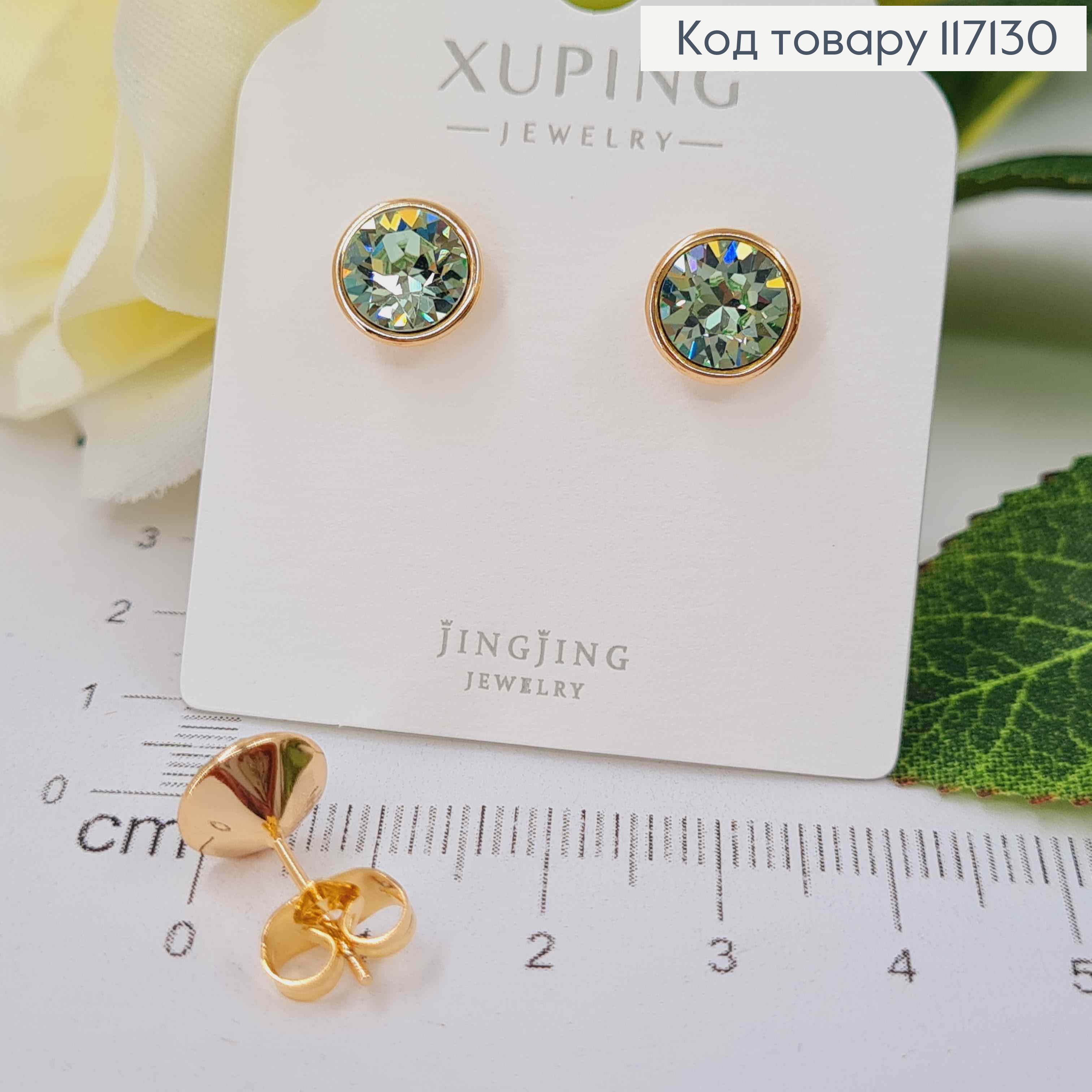 Серьги гвоздики Сваровски, с камнями Светло-зеленого цвета, 0,8см. Xuping 18K