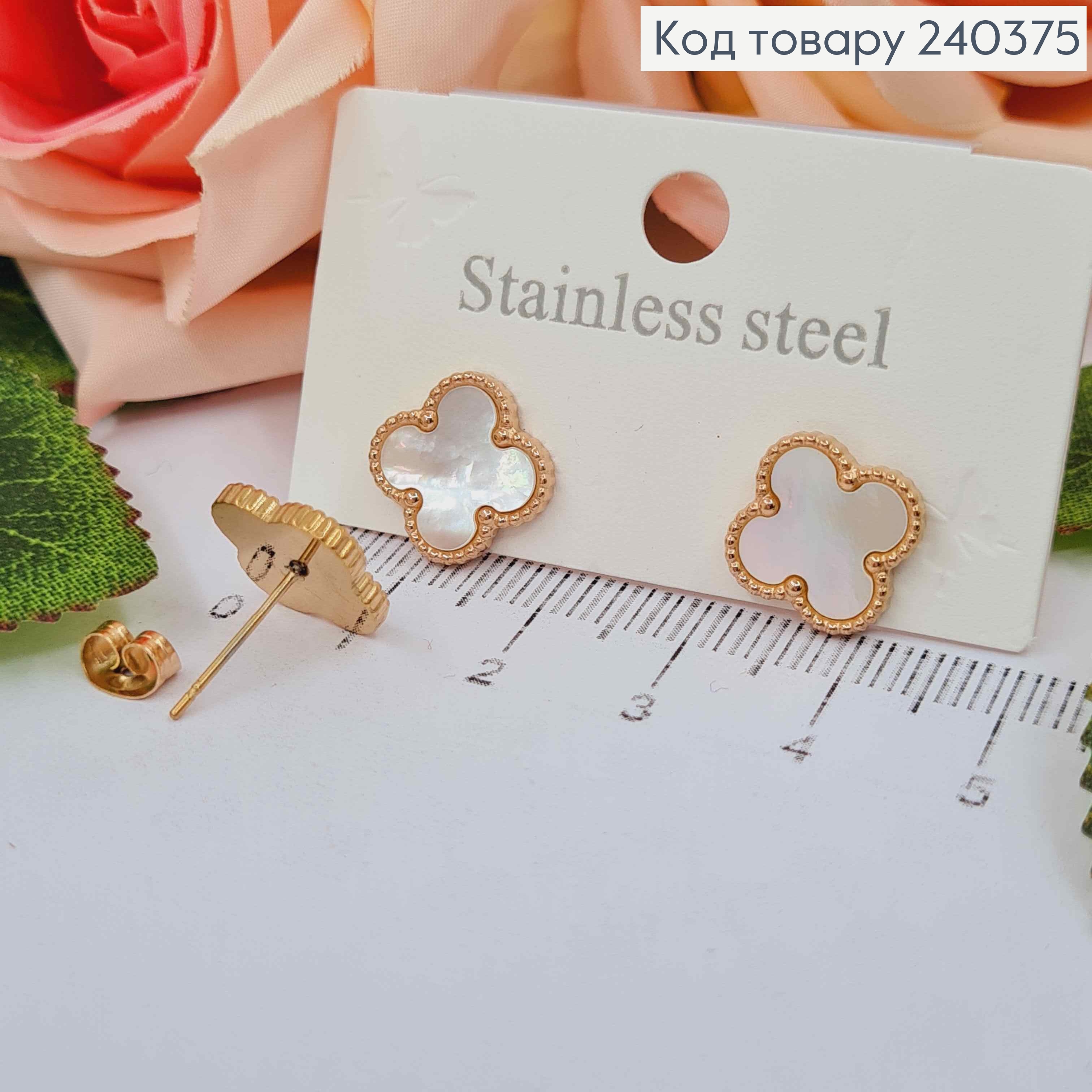 Серьги серебряного цвета, Van Cleef с перламутровой эмалью (1,4см), англ. застежка, Fashion Jewelry 260174 фото