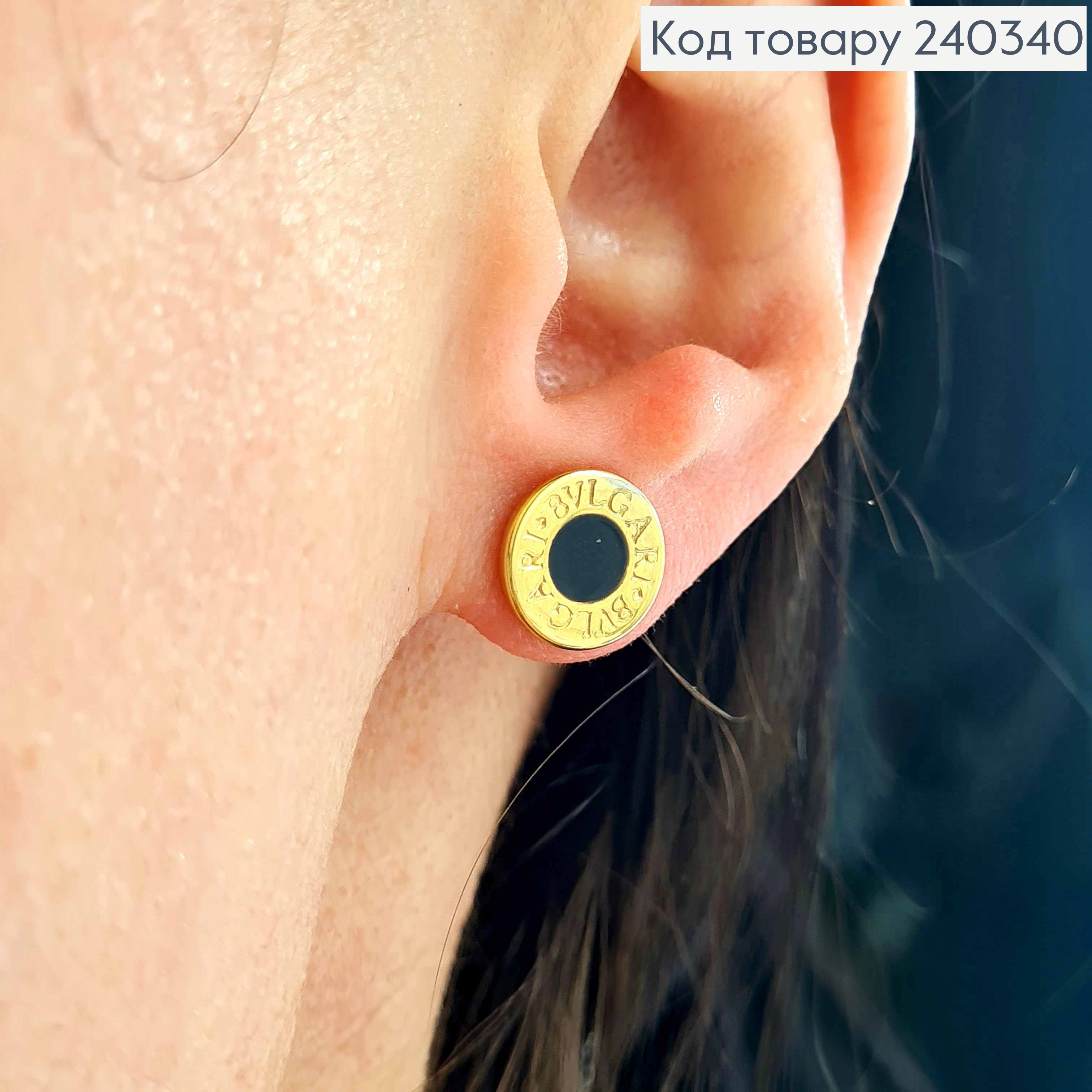 Серьги гвоздики, лимонного цвета, кружочки в стиле Булгари, с черной эмалью, Сталь Stainless Steel