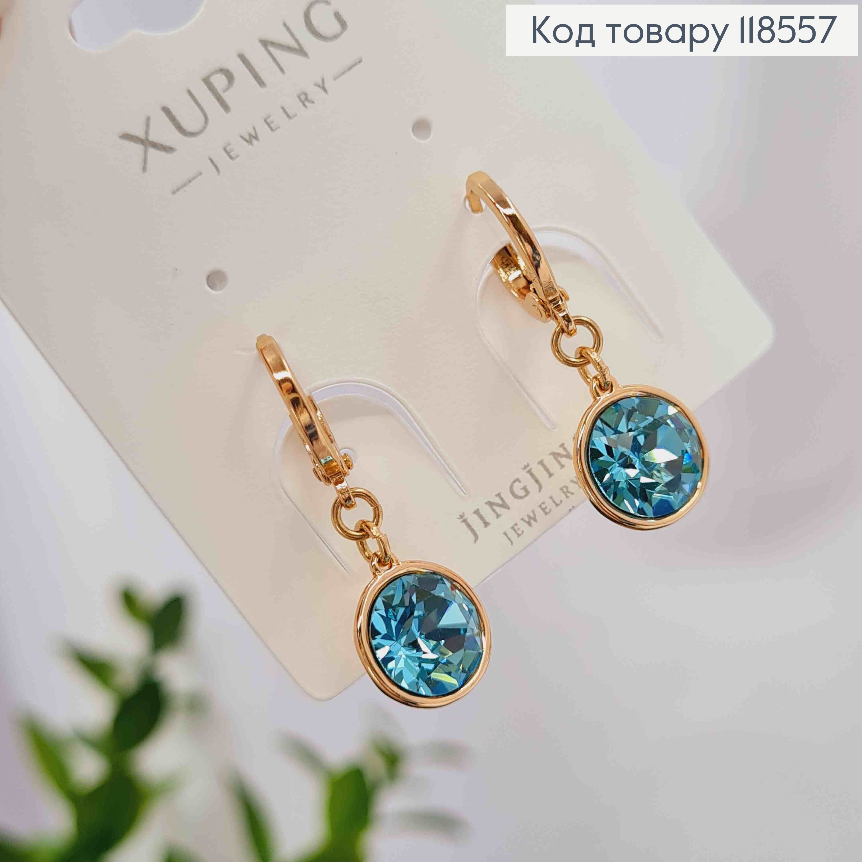 Серьги кольца (1,1) с подвесным Бирюзовым камнем Сваровски (1см), Xuping 18К