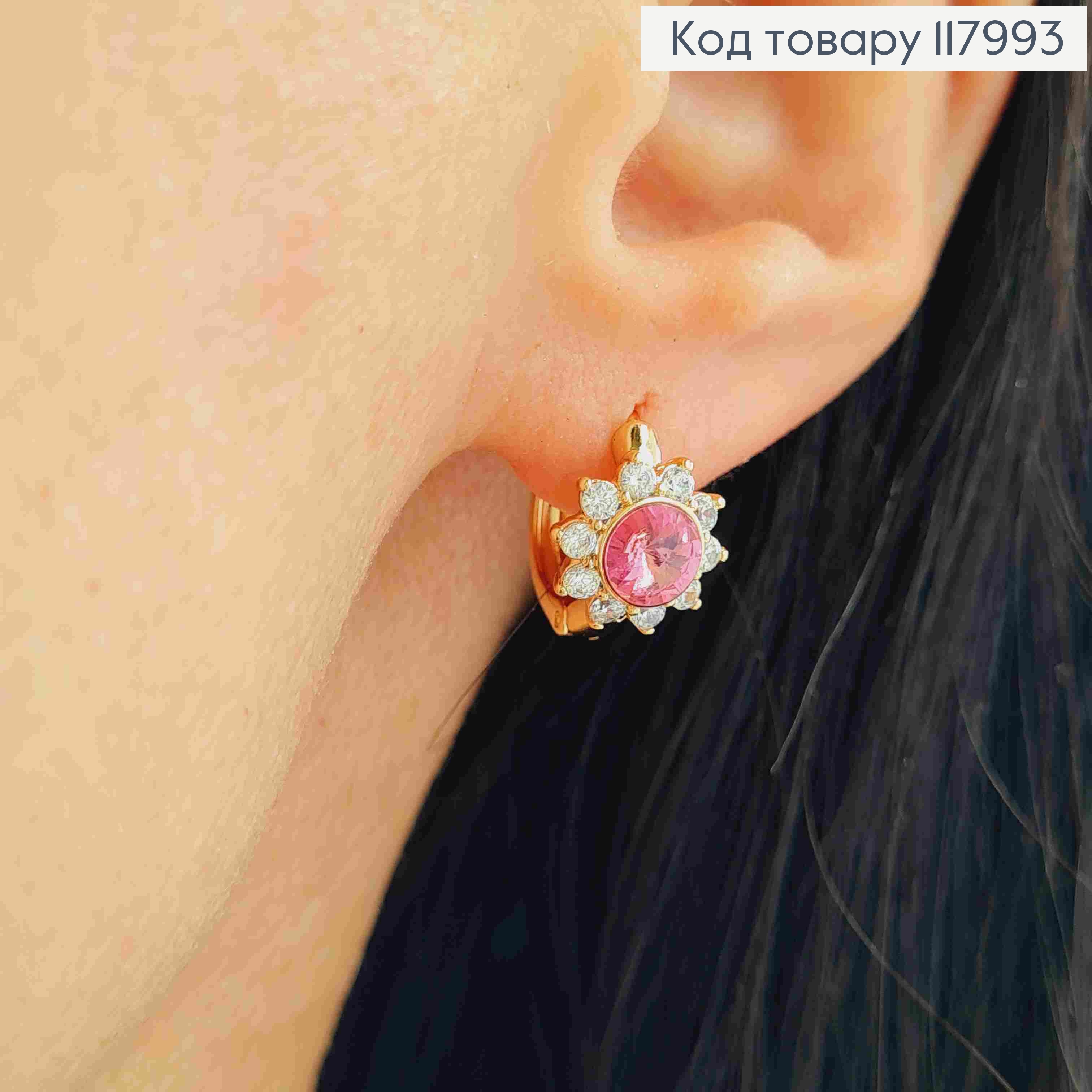 Серьги кольца "Цветок" с Розовым камнем сваровски, 1,3см, Xuping 18K
