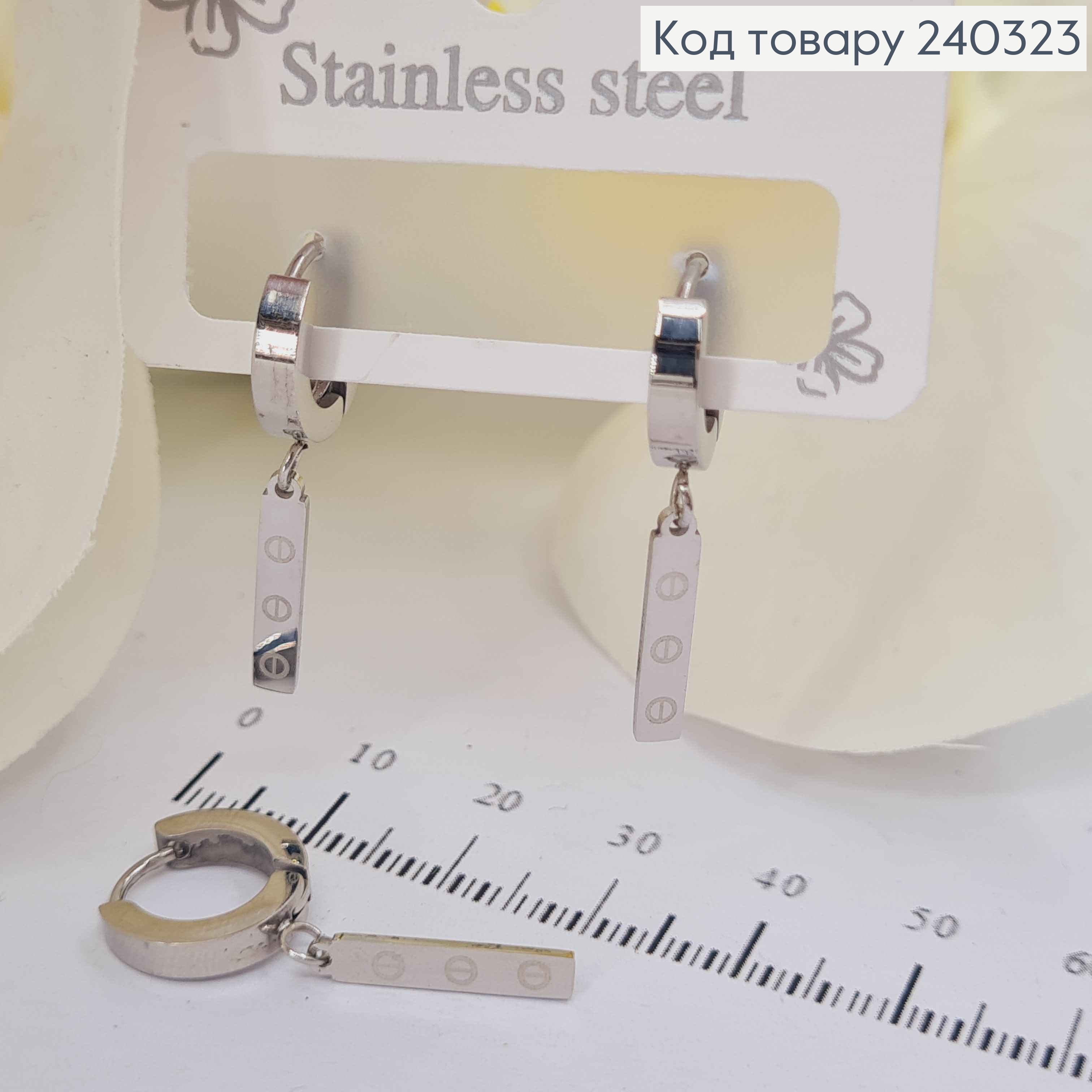 Серьги кольца серебряного цвета с подвеской пластинкой "Картье" сталь Stainless Steel