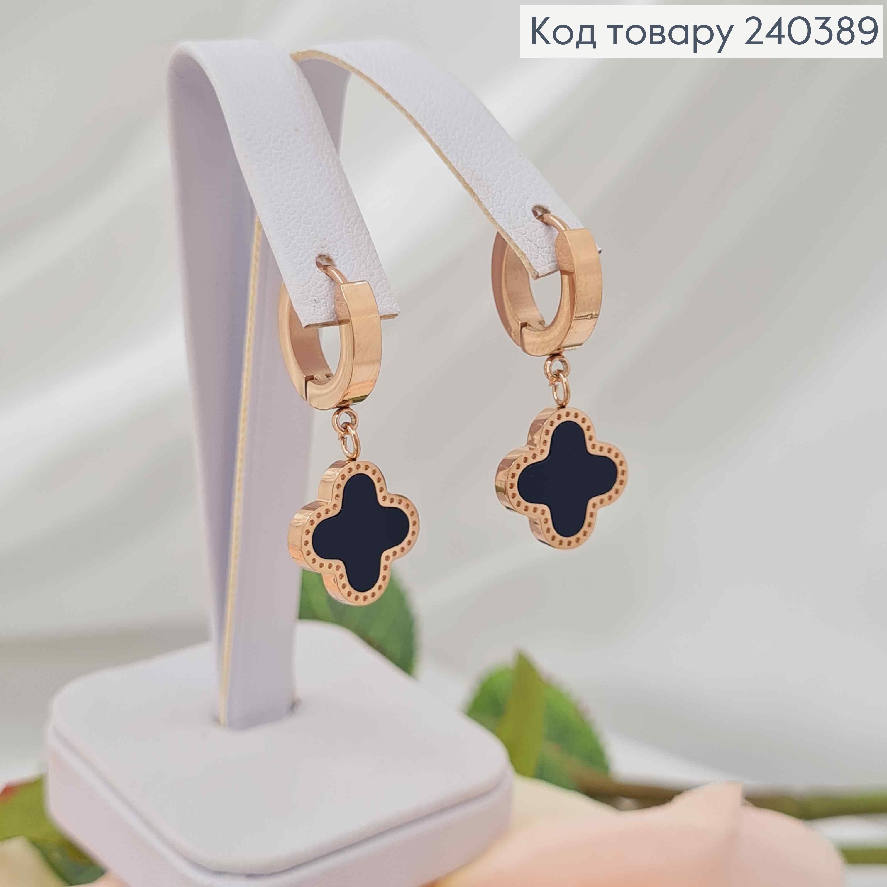 Серьги кольца, с черной эмалью, "Van Cleef", 1,6см, сталь Stainless Steel