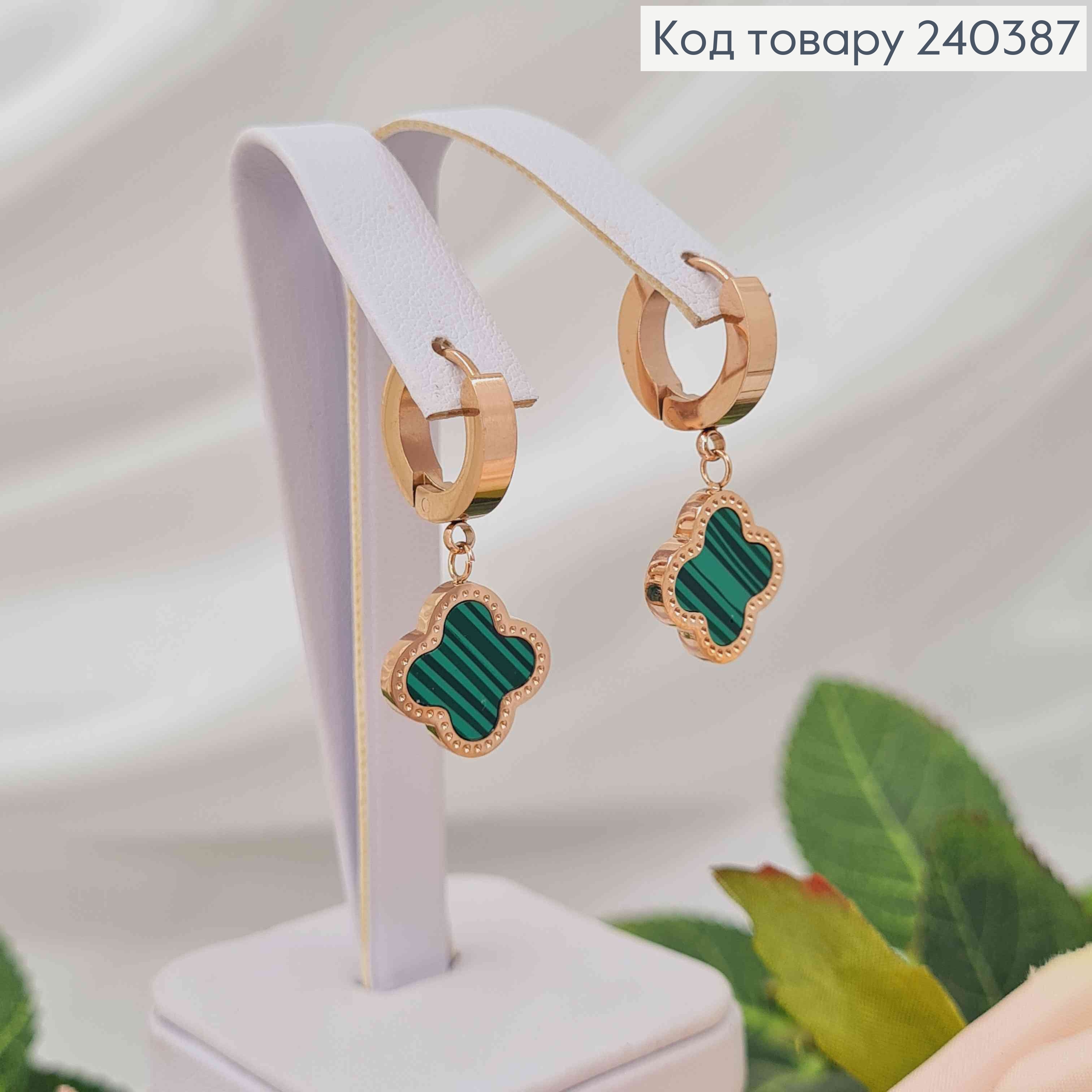 Серьги медного цвета с подвеской Van Cleef с Черной эмалью, 1,8+1,2см, Stainless Steel 260180 фото