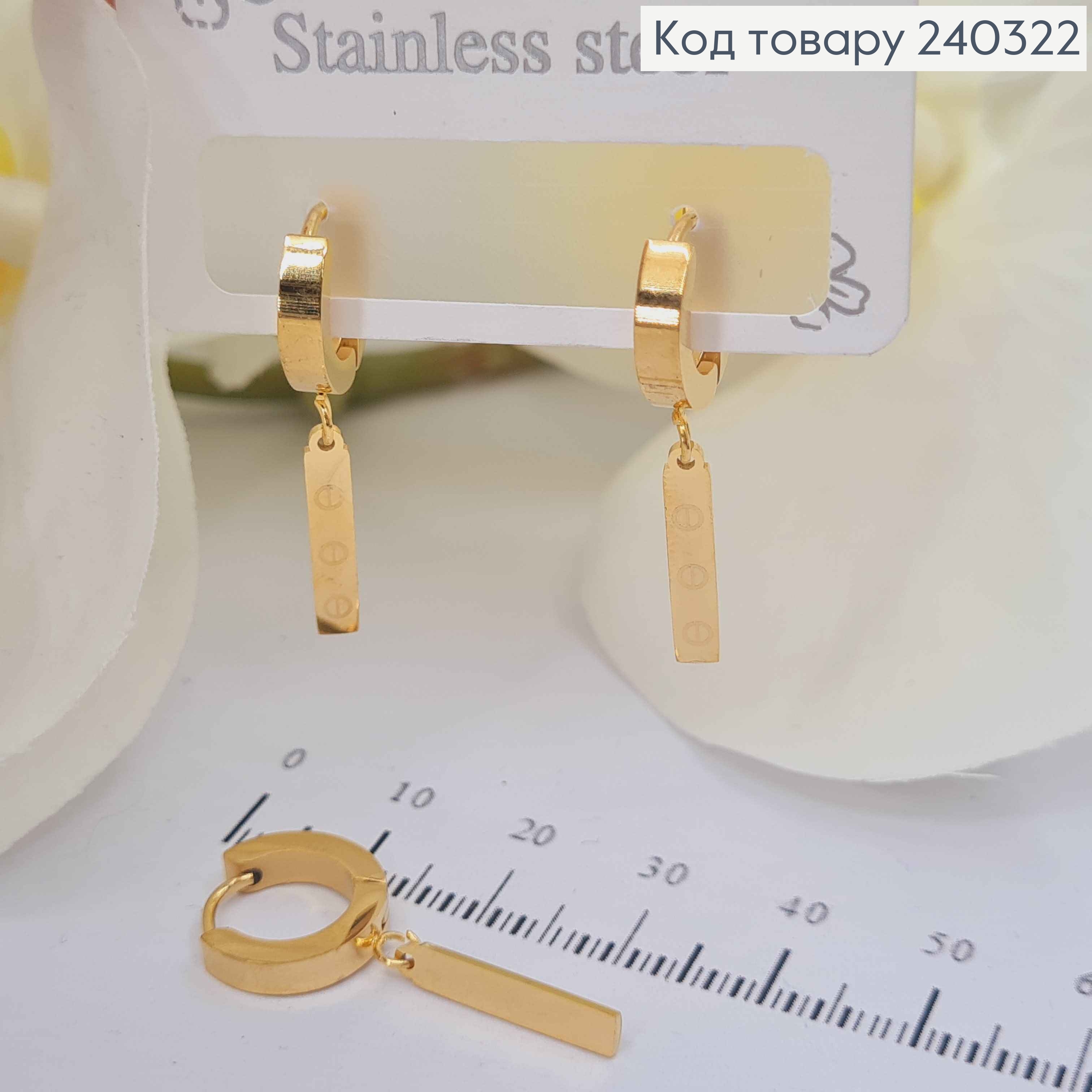 Серьги кольца золотого цвета с подвеской пластинкой "Картье" сталь Stainless Steel