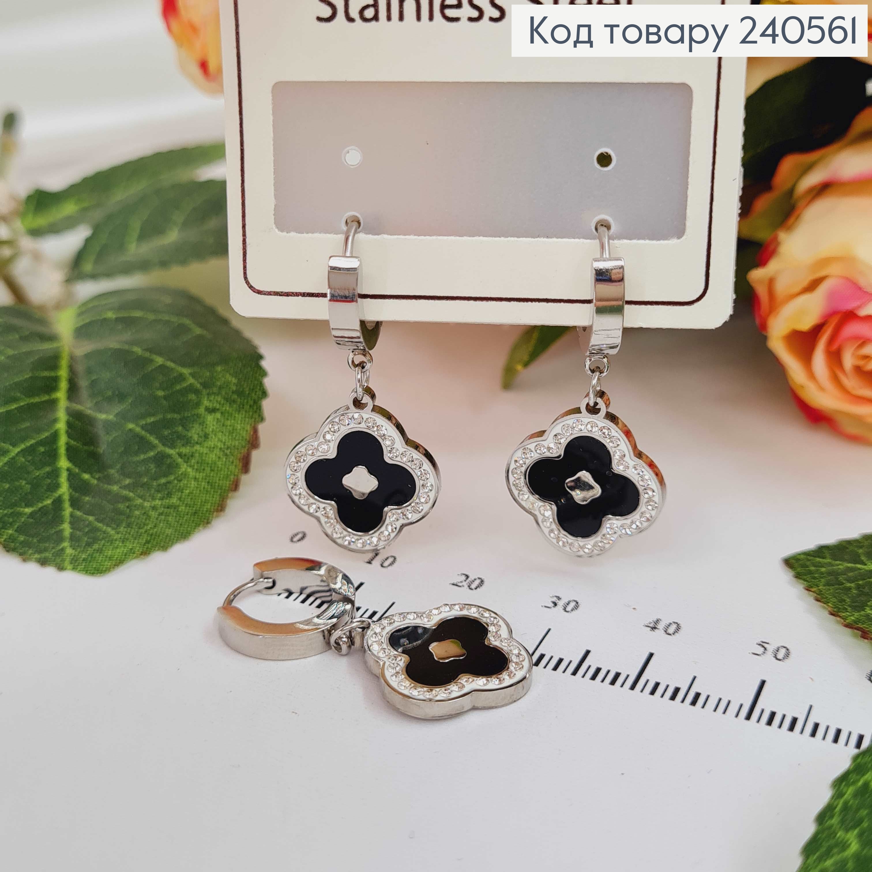 Серьги кольца с подвесками "Van Cleef" в камешках, 1,5см, серебряного цвета, сталь Stainless Steel