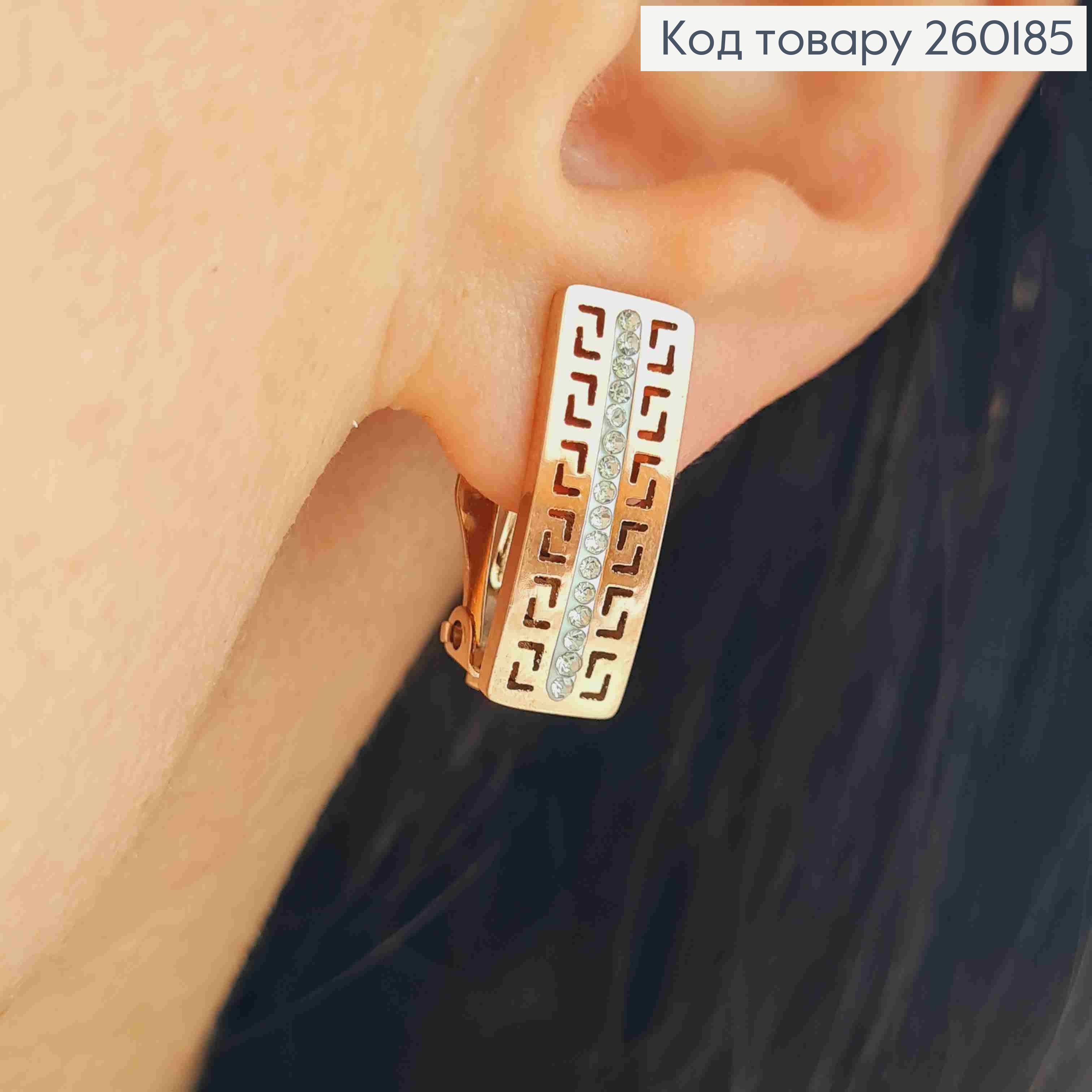 Серьги клипсы медного цвета, ВЕРСАЧЕ с Блестящими камешками, 2*0,6см, Stainless Steel