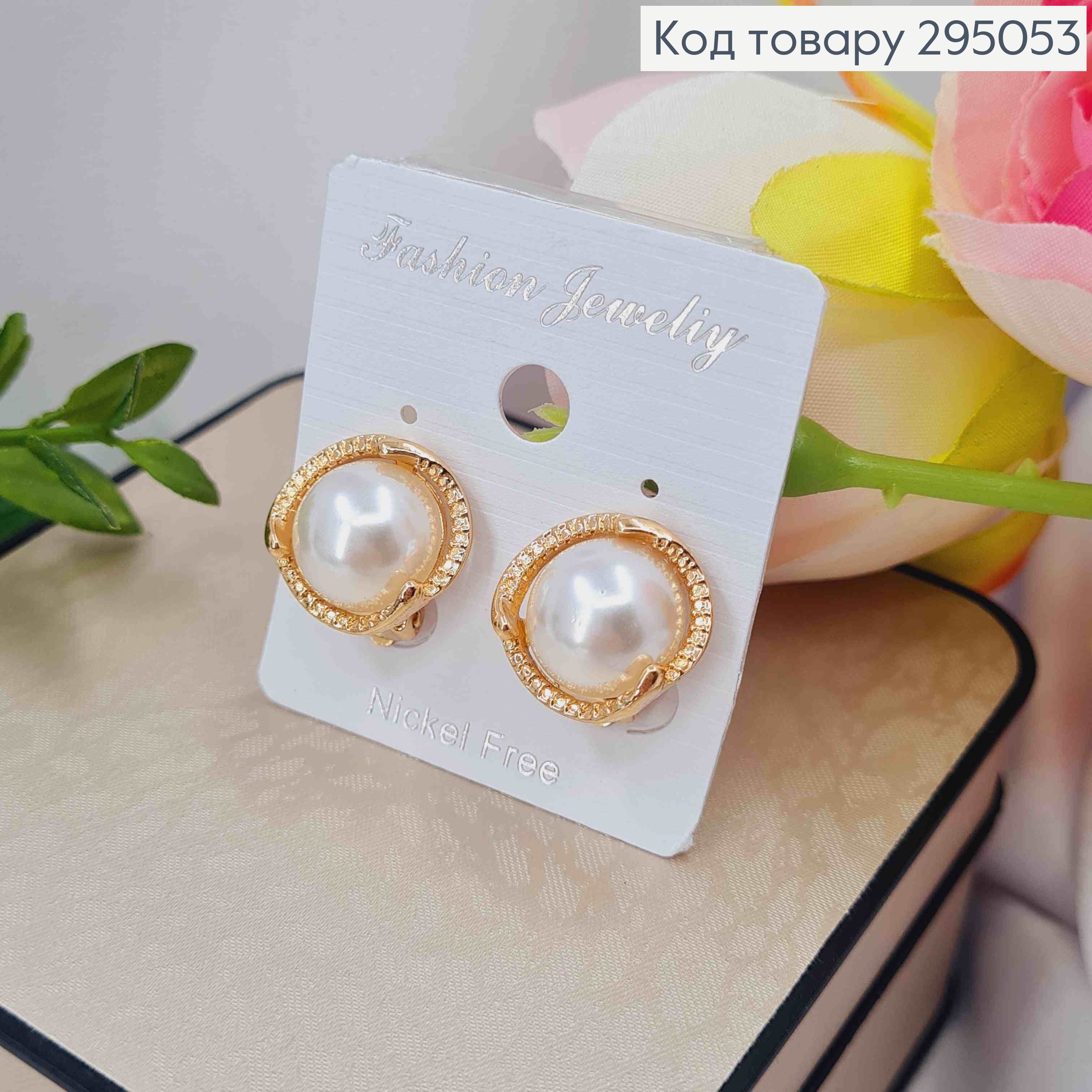 Серьги - Клипсы Овальная перламутровая бусина в оправе с тиснением, 2см, Золотого цвета 295135 фото
