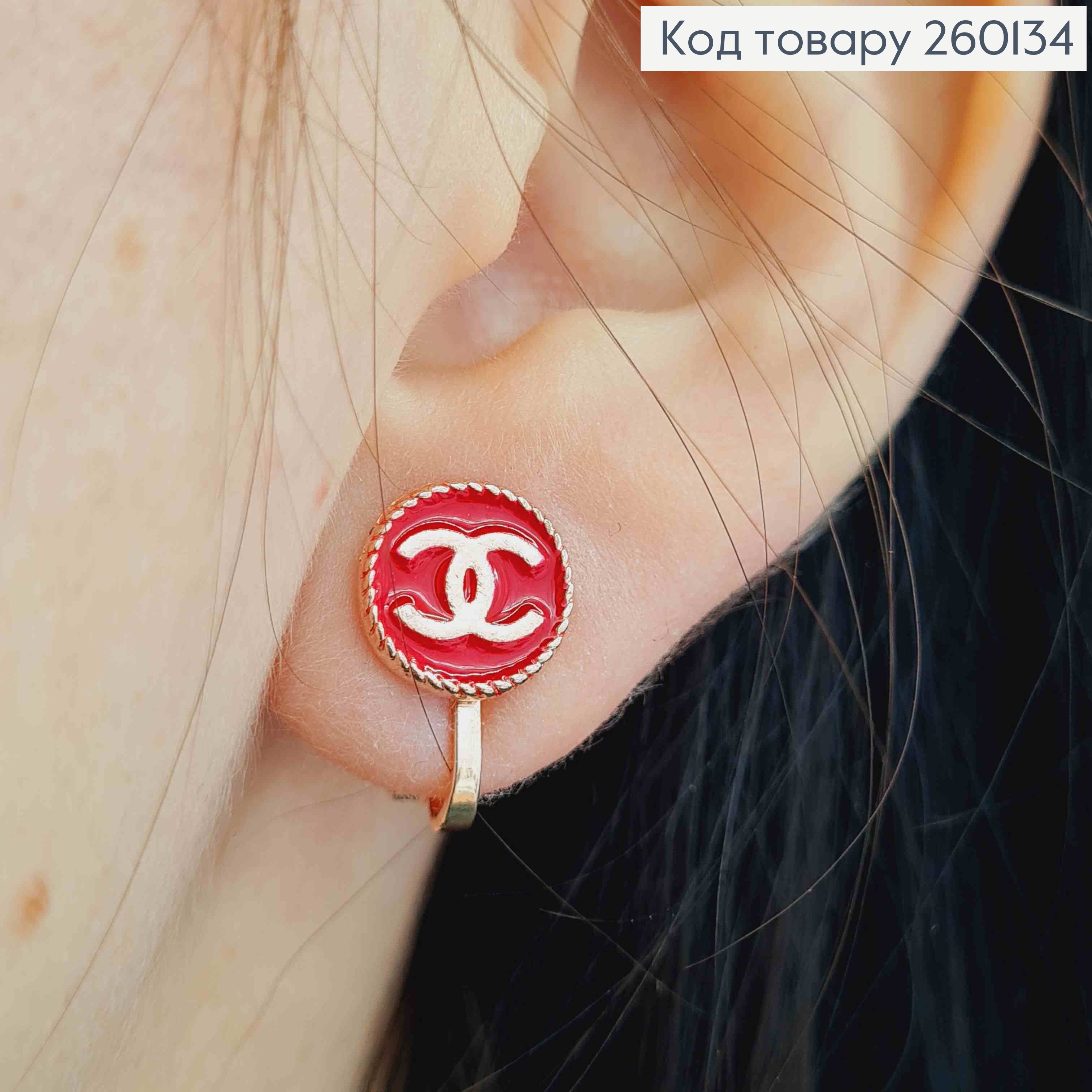 Серьги клипсы ШАНЕЛЬ с Красной эмалью, 0,9см, медного цвета, Zed Two
