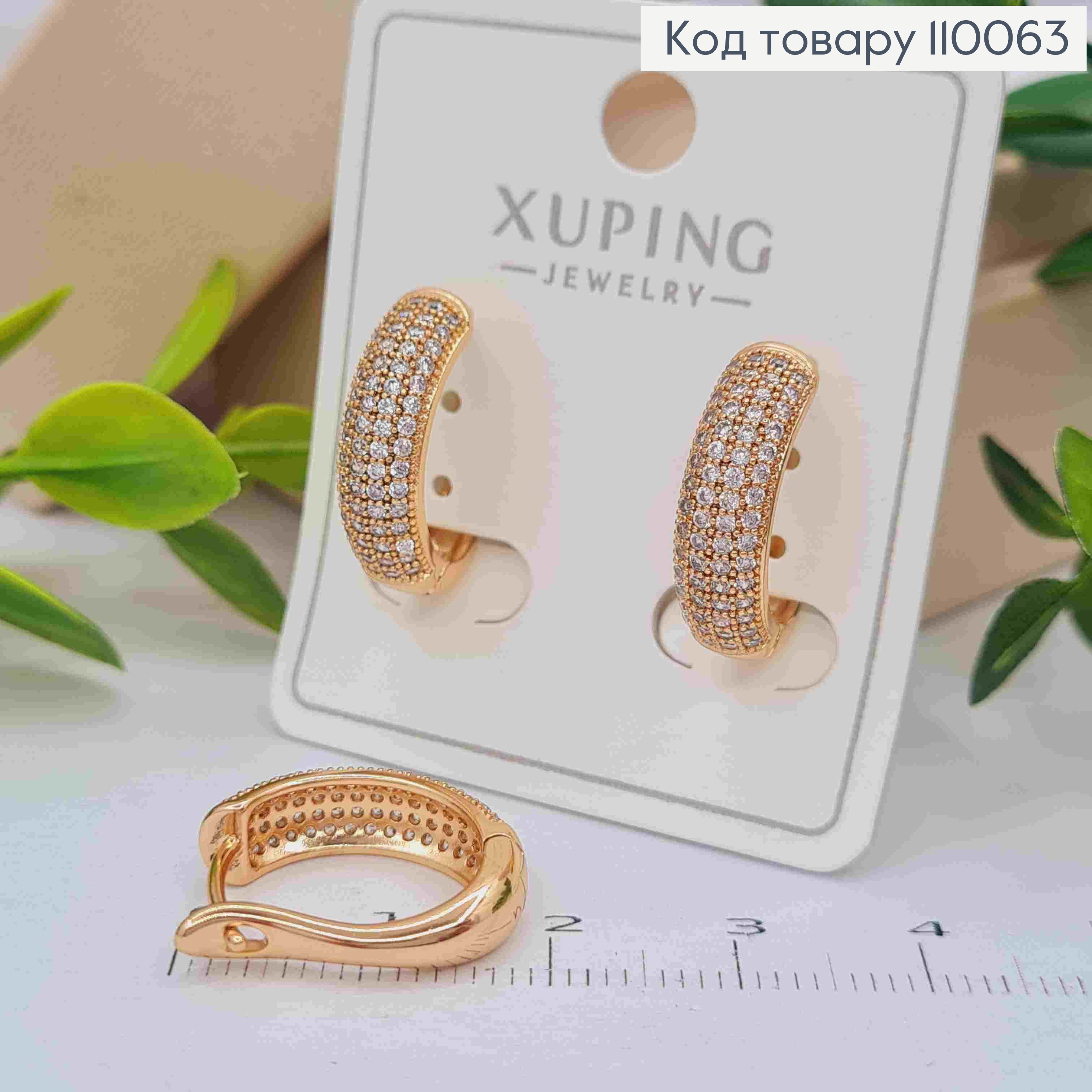 Серьги кольца "Волны" украшены Блестящими камешками, диаметр 1,5см, Xuping 18K 110078 фото