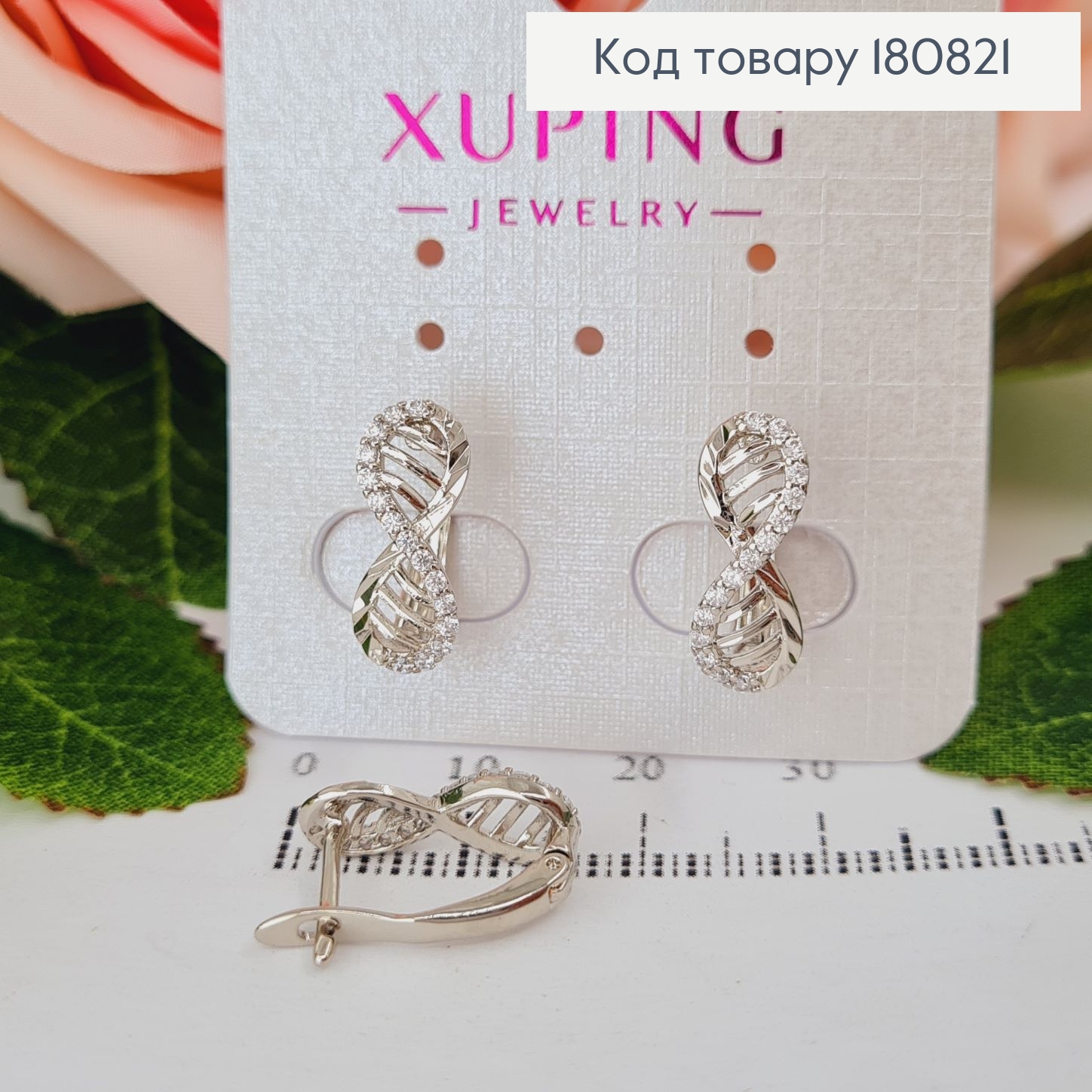 Сережки родированые "Бесконечность" с камнями (англ.застежка), 1,5*0,5см, Xuping