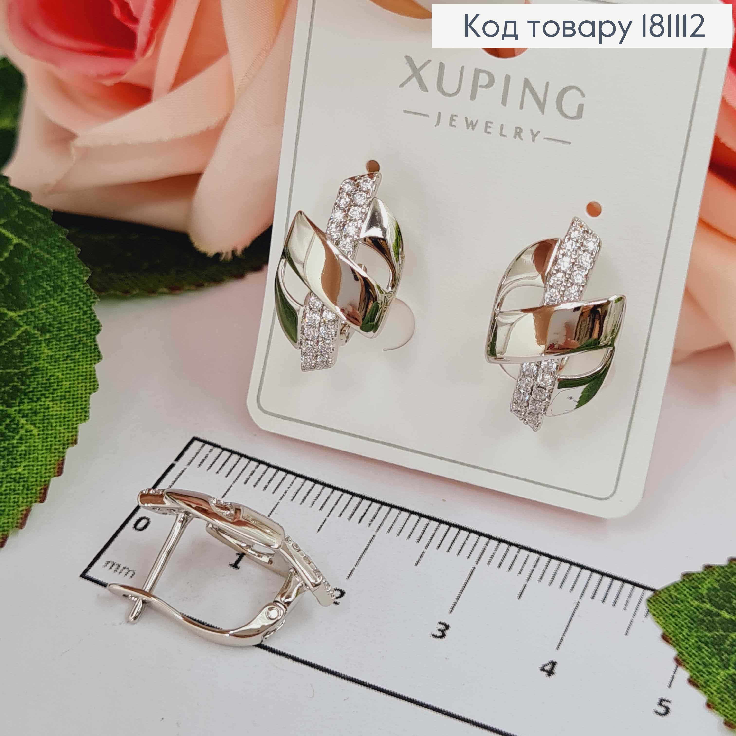 Серьги родованные "Блеск" украшены Блестящими камешками, 1,9см, английская застежка, Xuping 181961 фото
