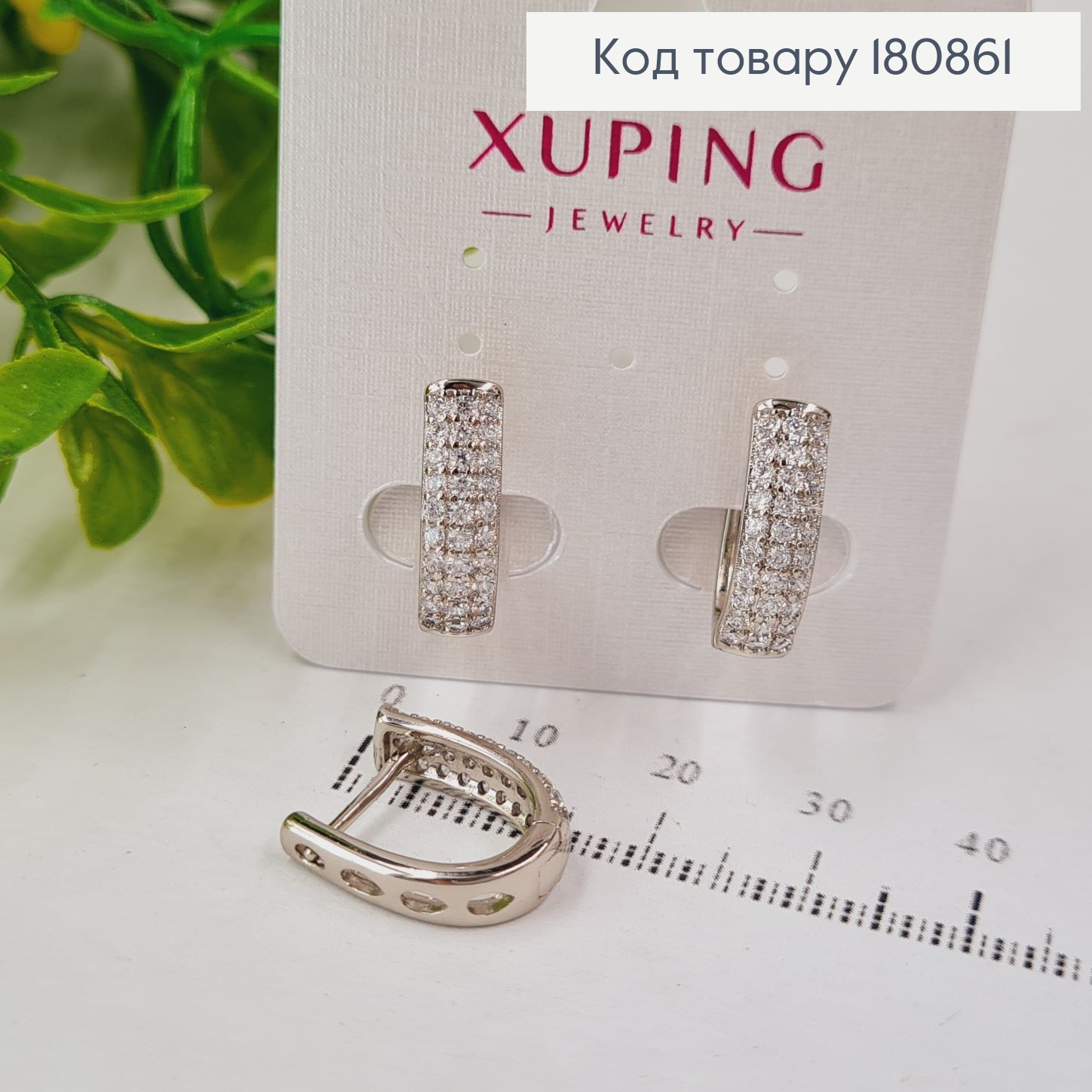 Сережки родированые Дуга с тремя рядами камней ,1,5*0,7см, Xuping