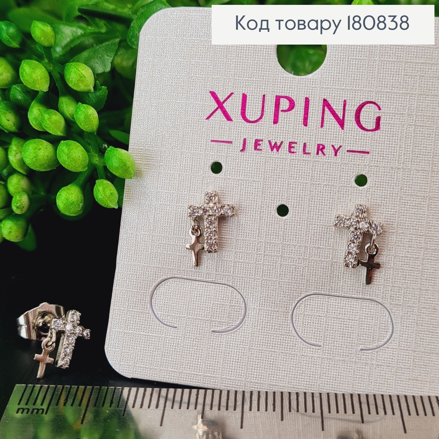 Сережки родированые гвоздики Крестики с камнями, 0,7*0,5см, Xuping