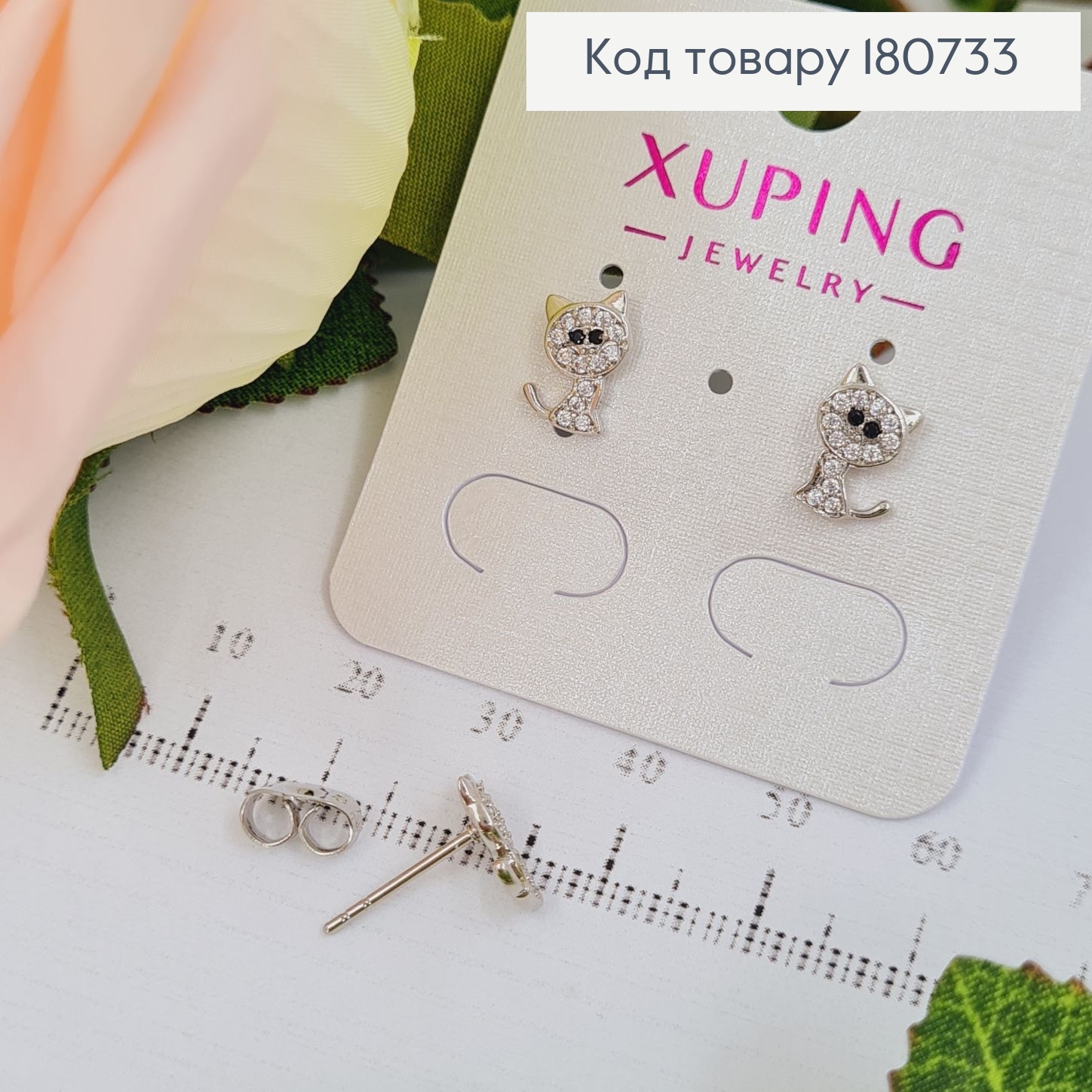 Сережки родированые гвоздики Котики в камнях, 1*0,6см, Xuping