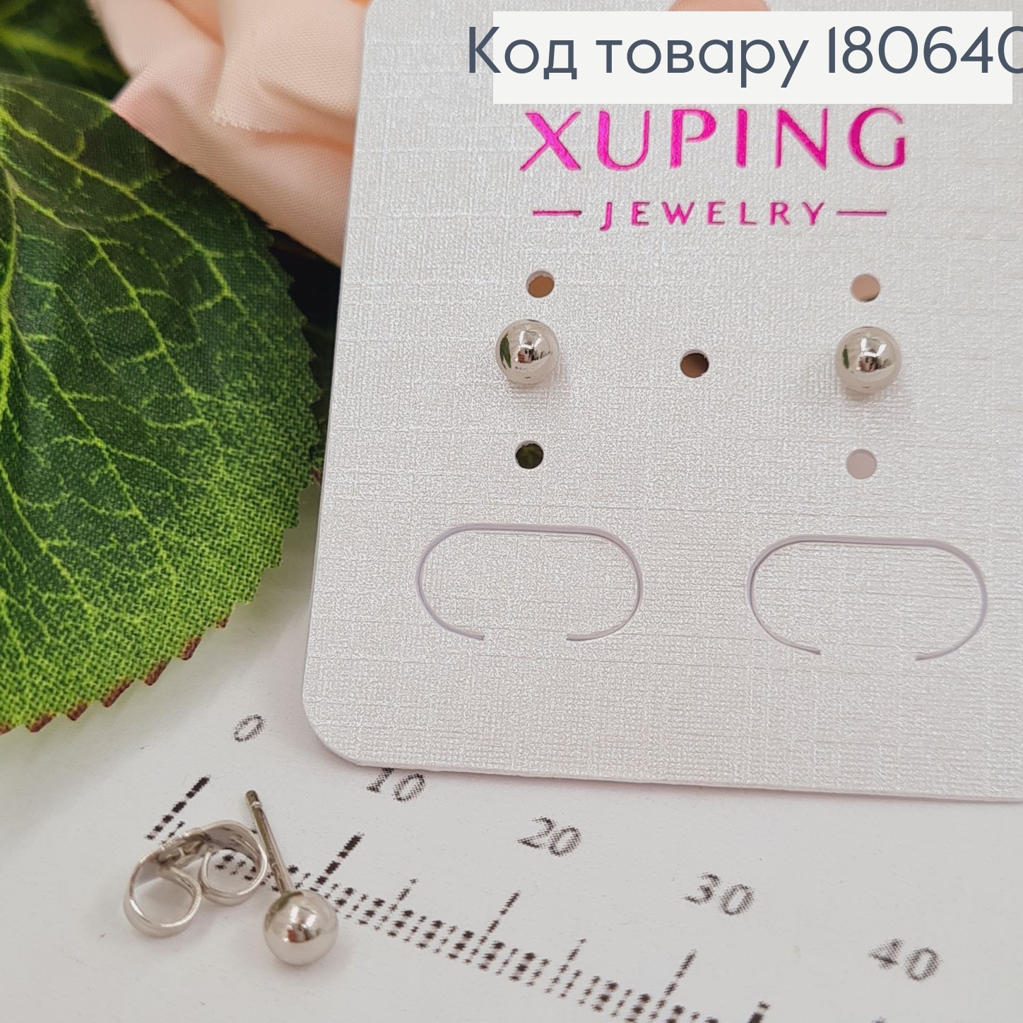 Сережки родированые, гвоздики шарик 4мм, Хuping