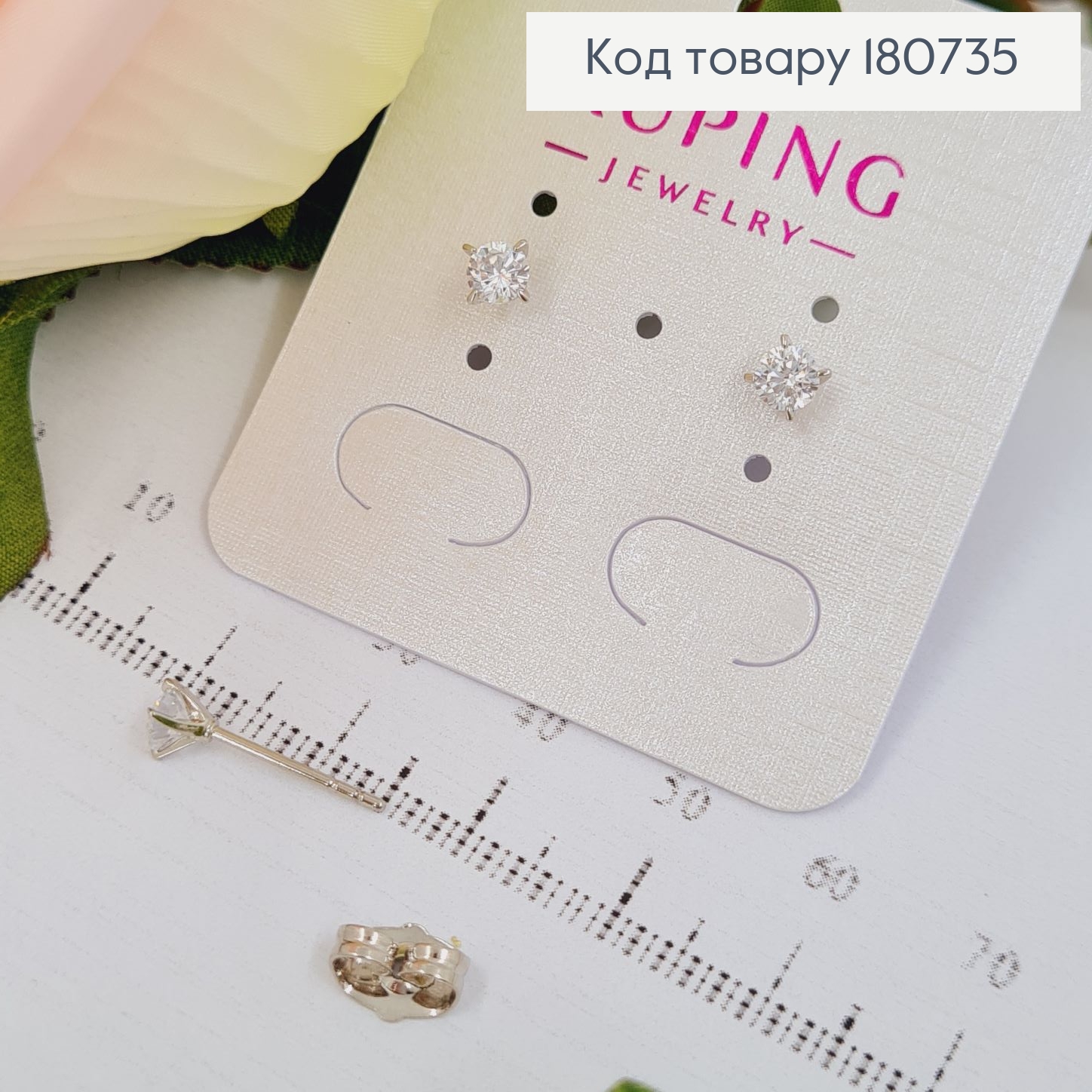 Сережки родированые гвоздики с камнем 0,4см, Xuping
