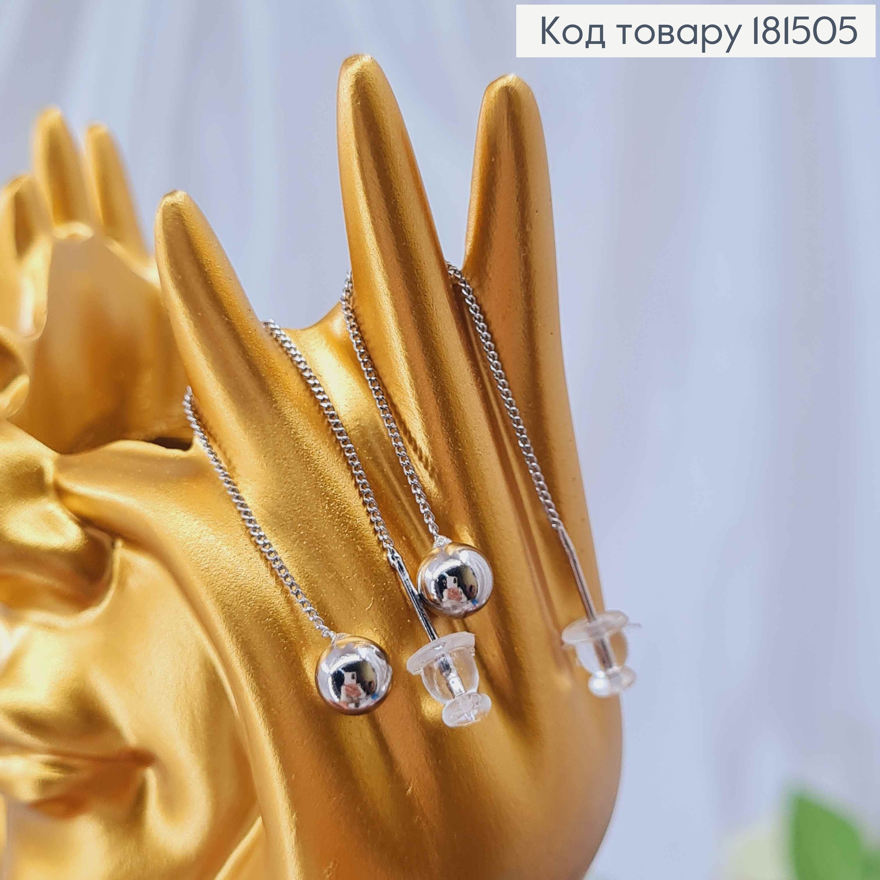 Серьги родованные гвозди, с подвесным шариком (6мм) на цепочке, длинная 6,3см, Xuping