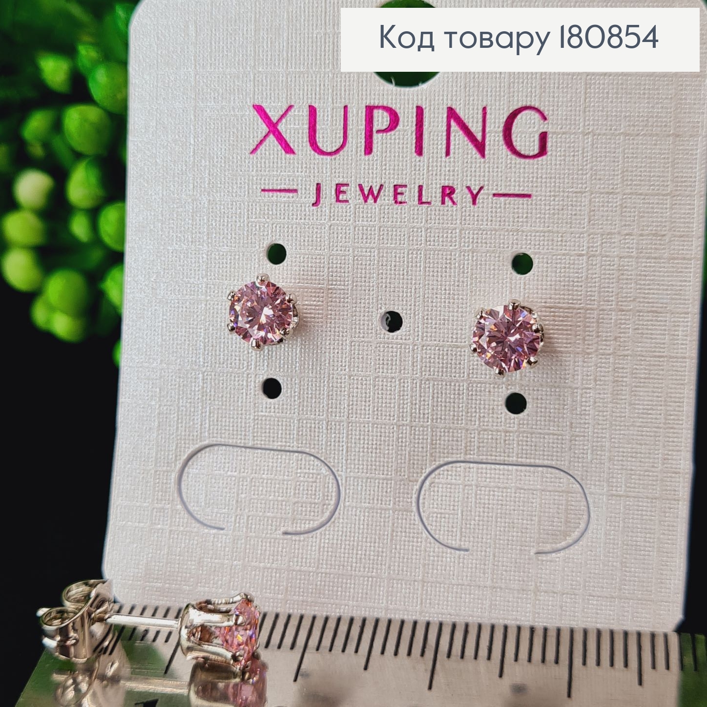 Сережки родированые гвоздики с Розовым камнем, 0,5см, Xuping