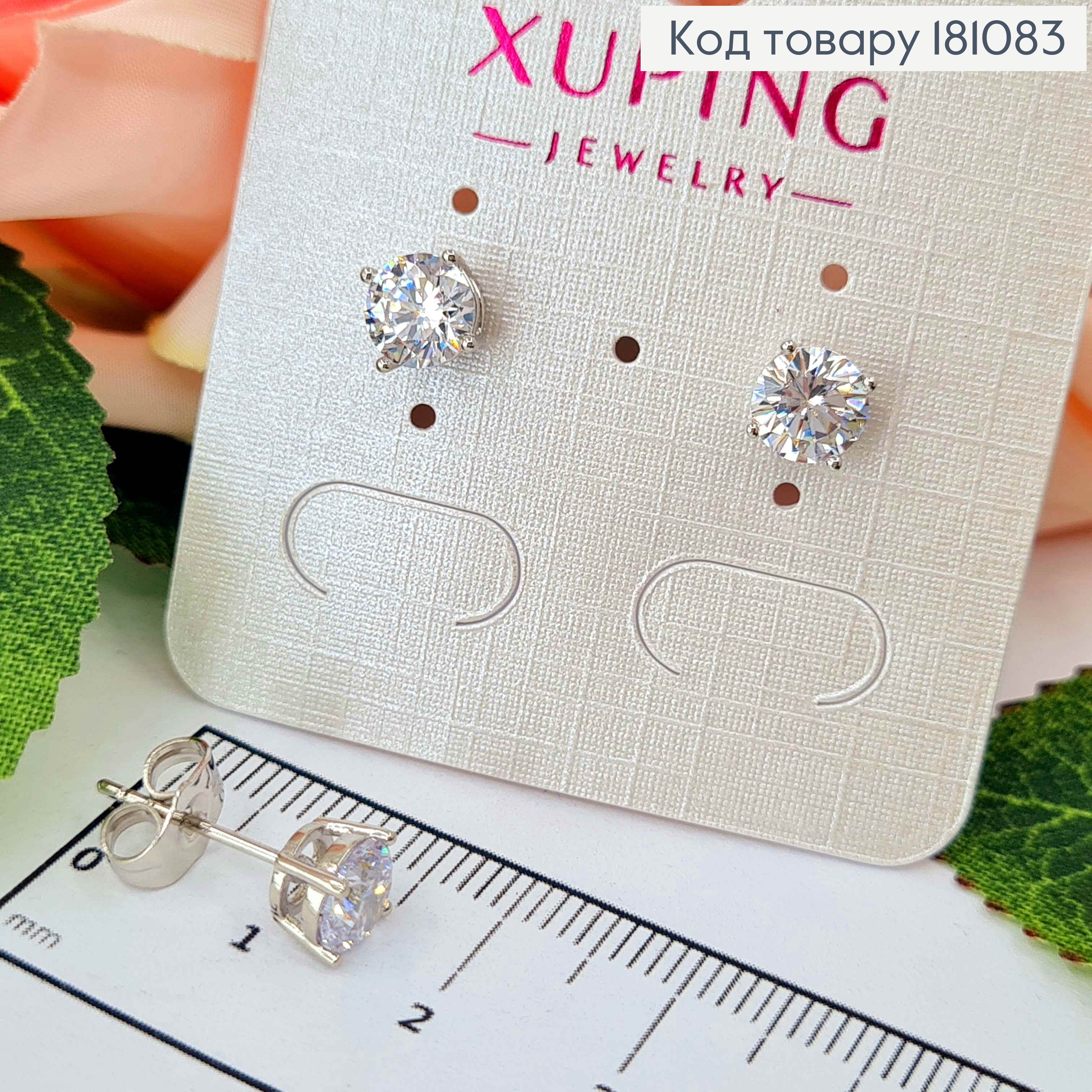 Сережки родовані, гвоздики, з білим камінцем 6мм, Xuping
