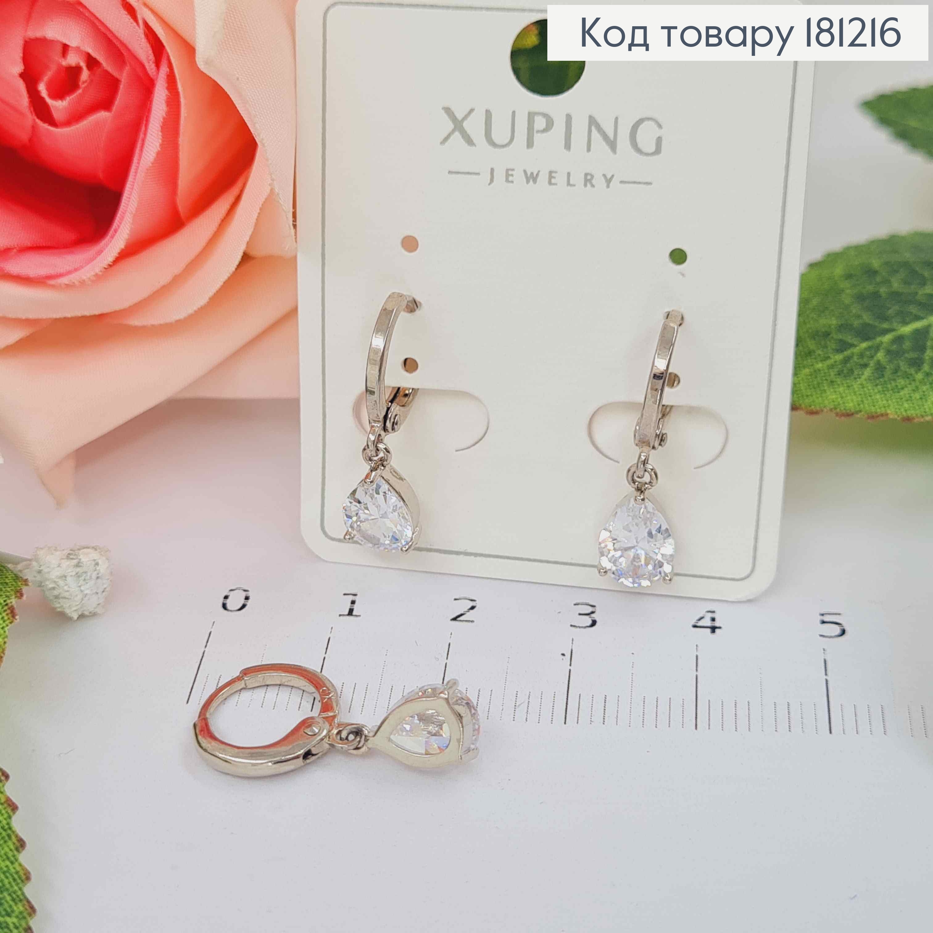 Серьги родованные "Блеск" украшены Блестящими камешками, 1,9см, английская застежка, Xuping 181961 фото