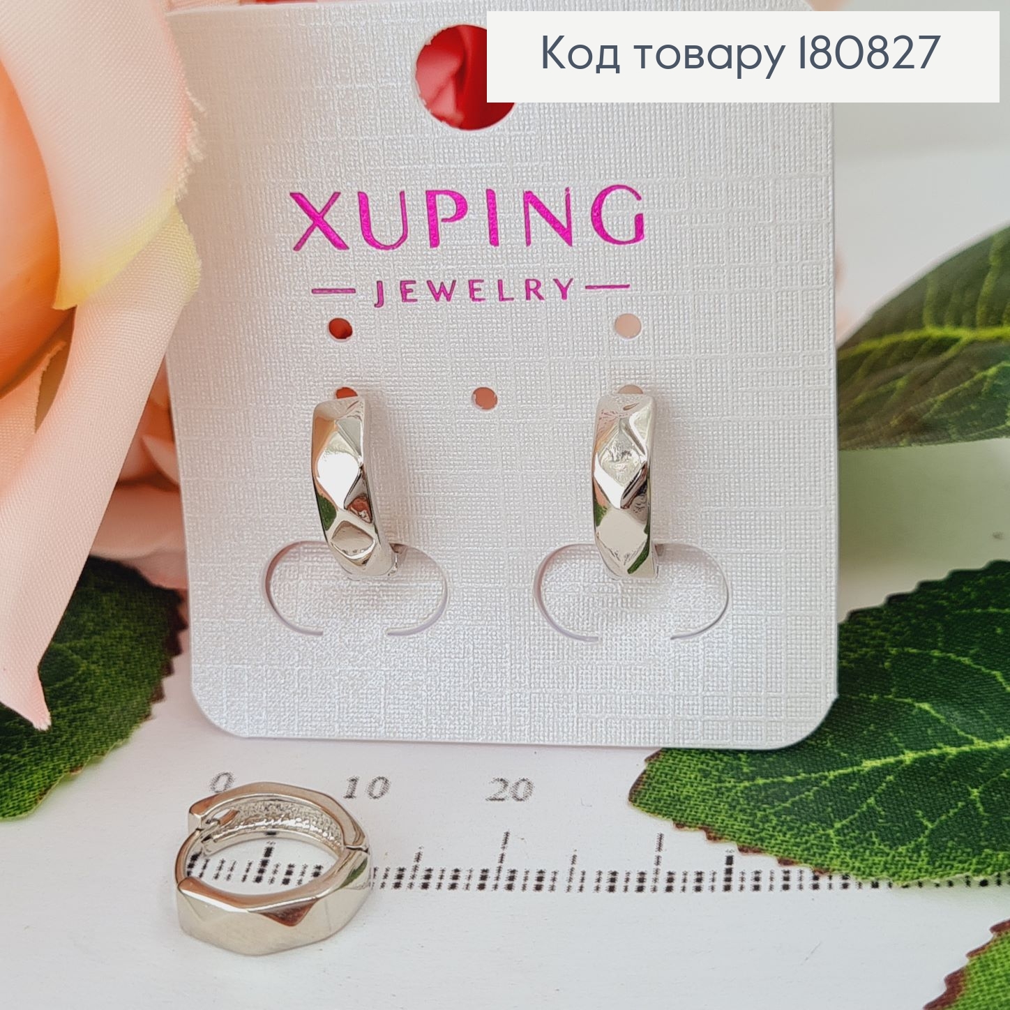 Сережки родированые кольца Граненные, 1,2см, Xuping