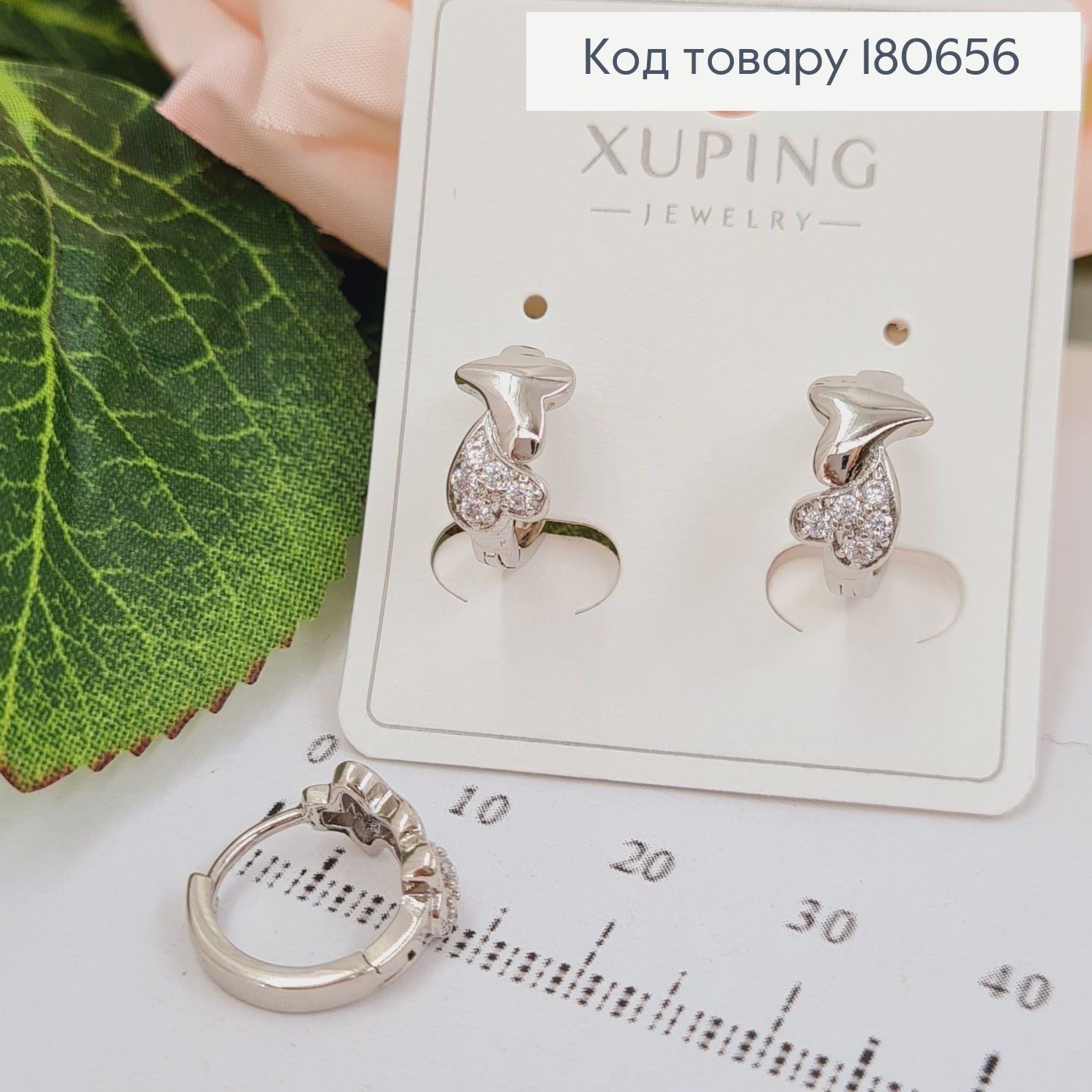 Сережки родированые, кольца с двома сердцами, 1*0,5см, Xuping