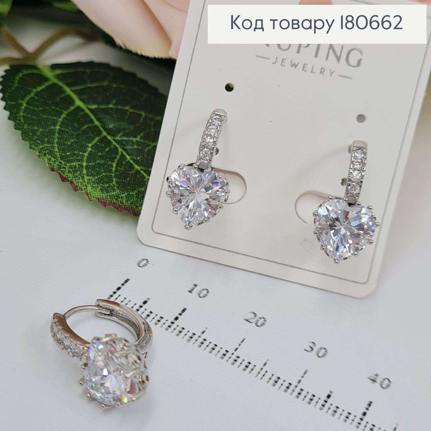 Сережки родированые кольца с камнем сердце, 2*1см, Xuping