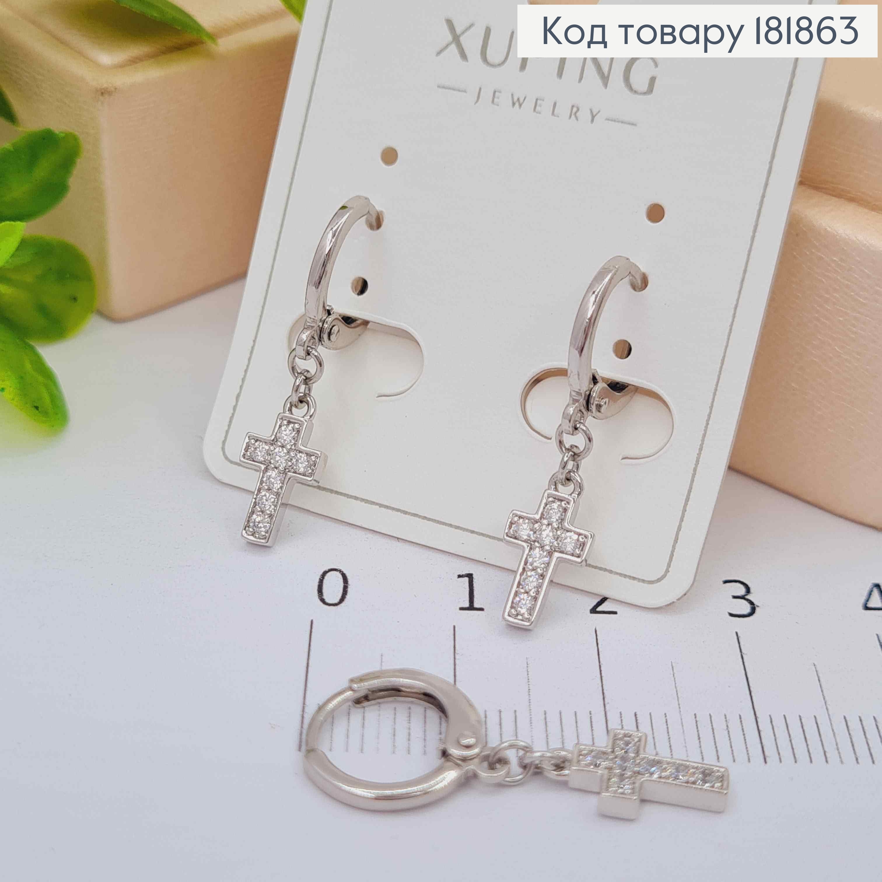 Серьги кольца с подвесными "Крестиками" (1,2*0,6см), диаметр 1,1см, Xuping
