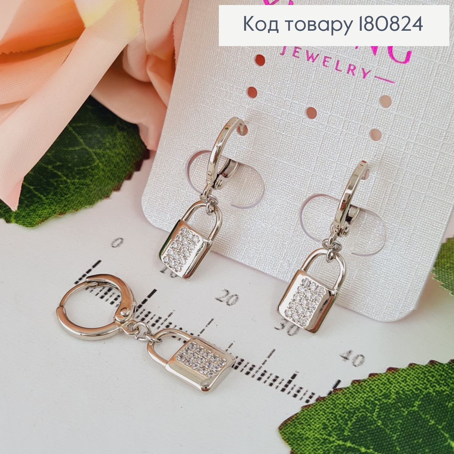 Сережки родированые кольца "Замочек" с камнями, 2,5*1см, Xuping