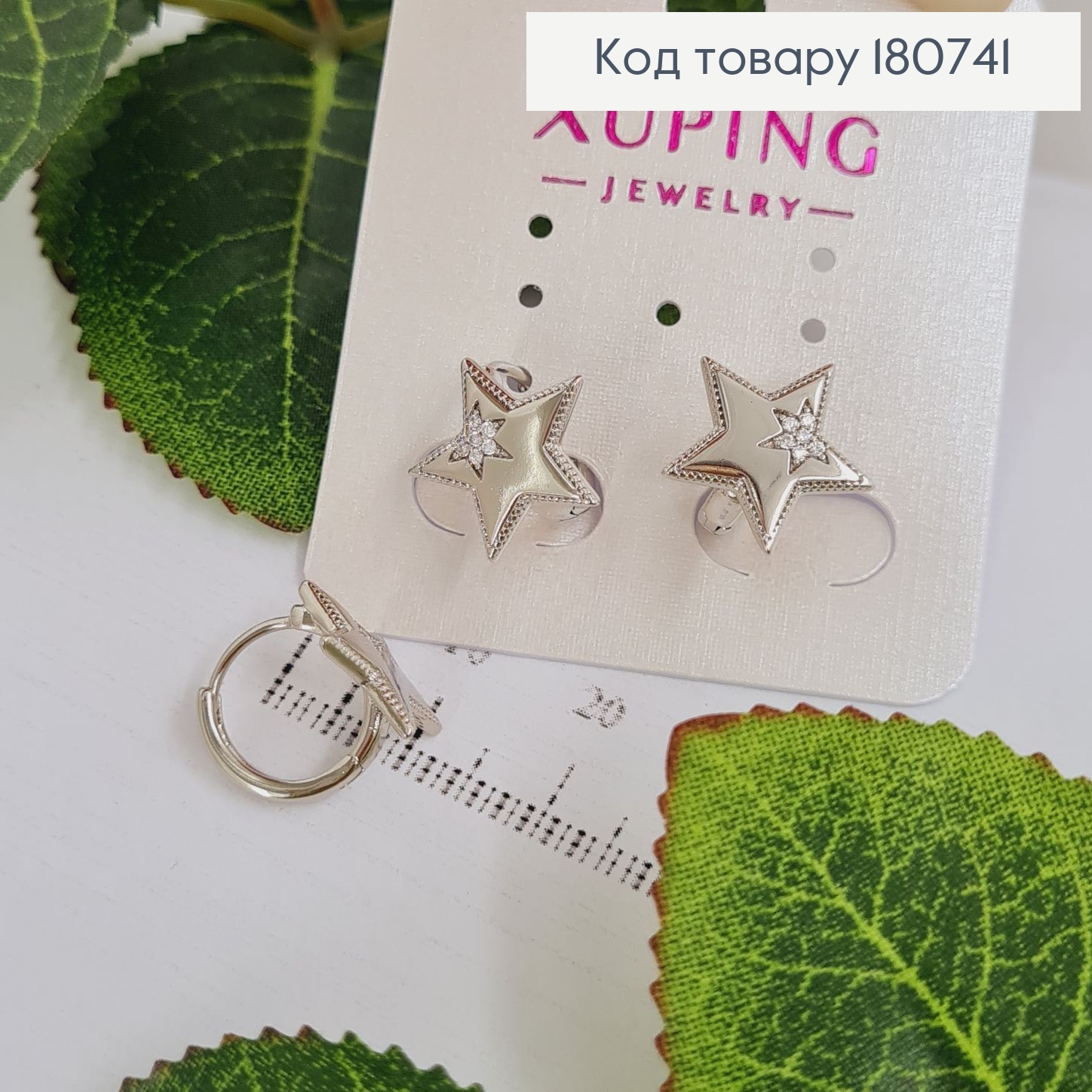 Сережки родированые кольца Звездочки с камнями, 1*1см, Xuping
