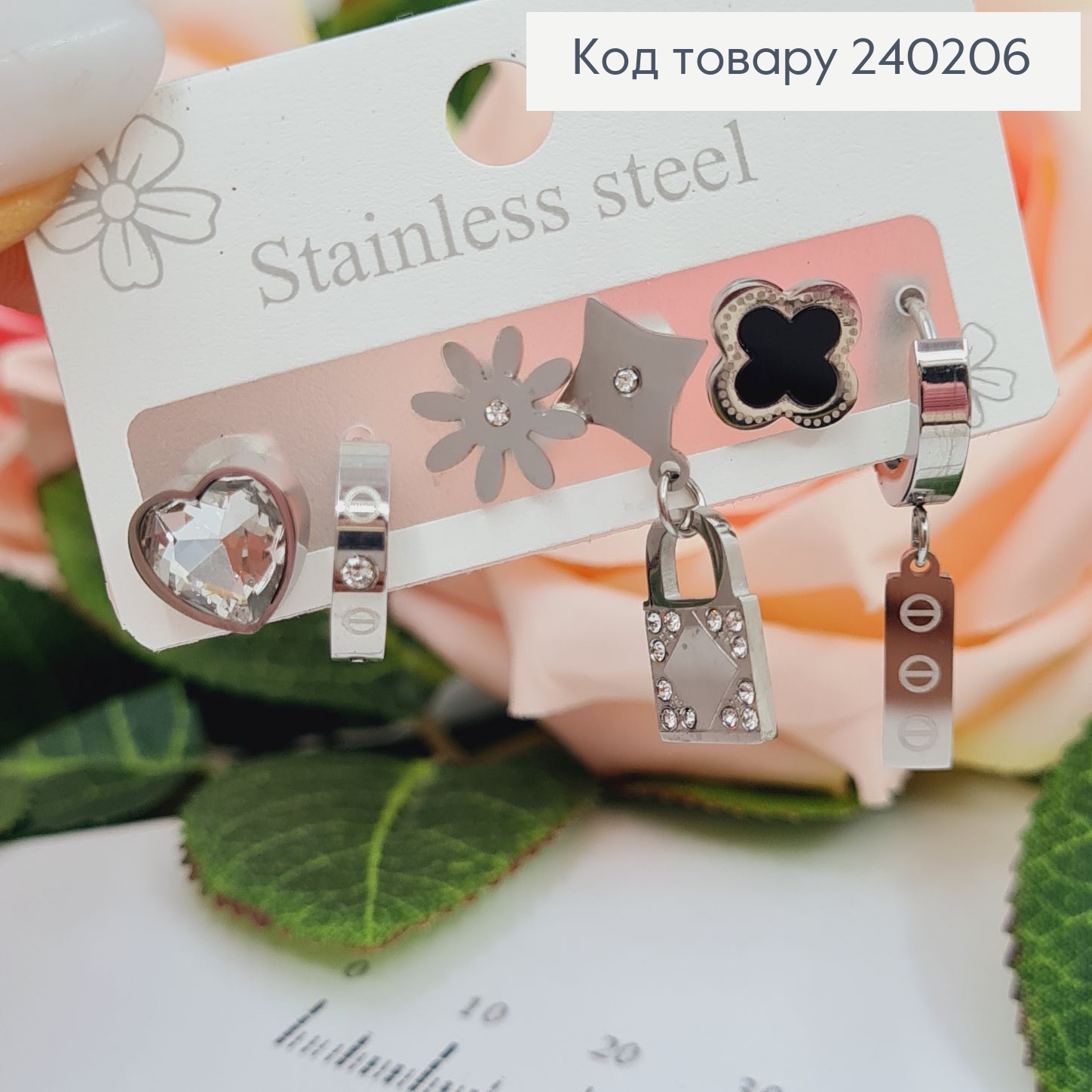 Сережки родованые Van Cleef, 3пары с камнями Stainless Steel