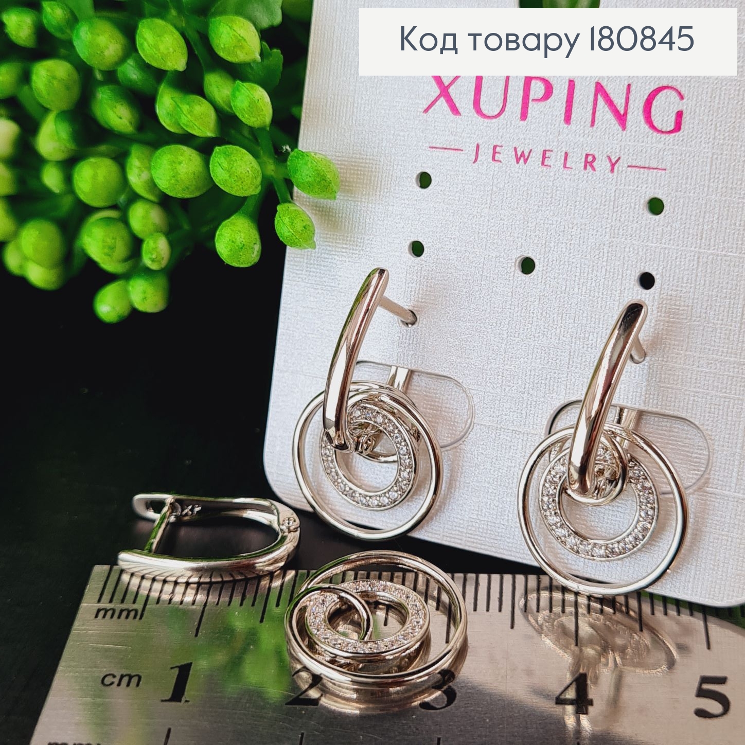 Сережки родированые "Круга" с камнями (англ.застежка), 2*1,2см, Xuping