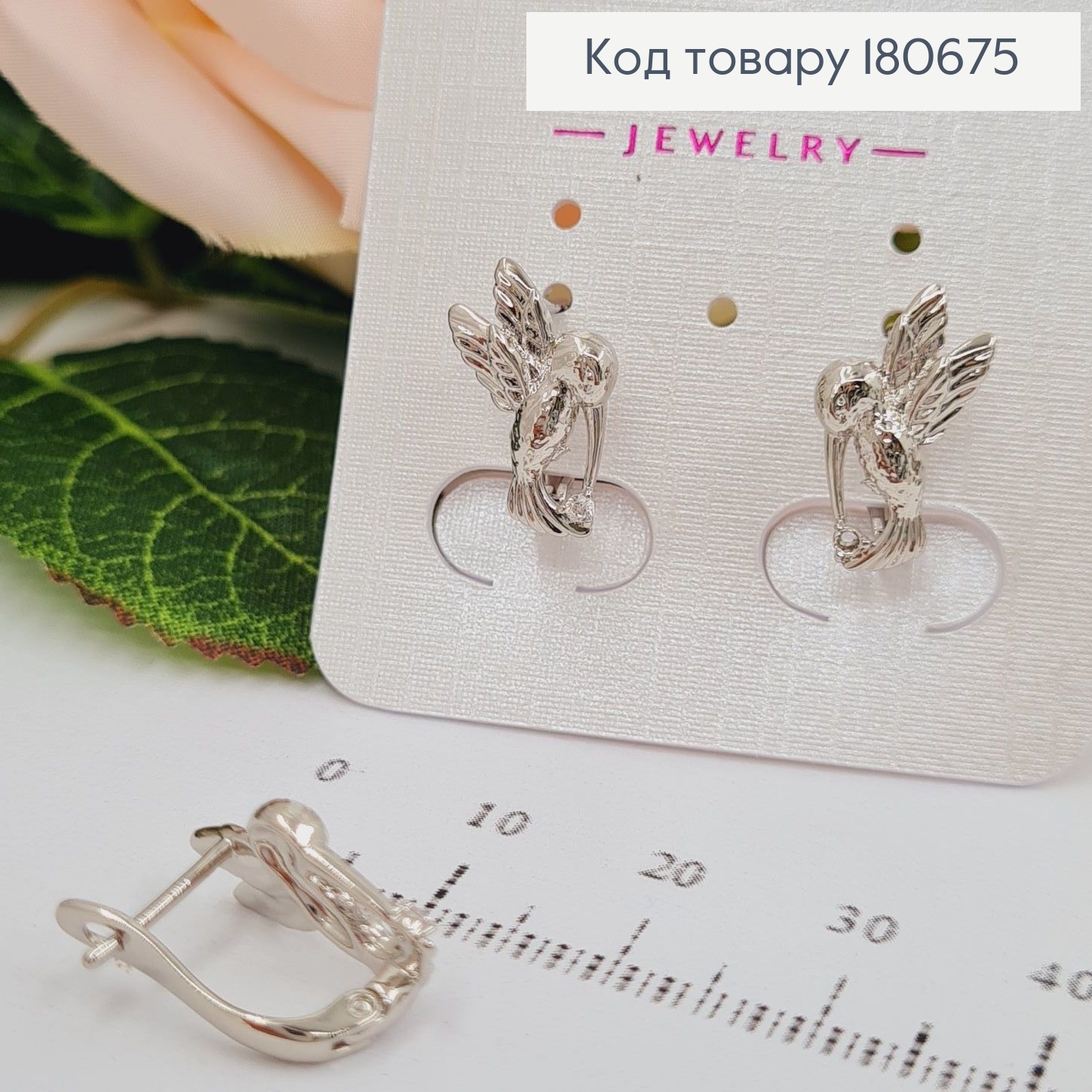 Сережки родированые Колибри (англ.застежка), 1,5*1см, Xuping
